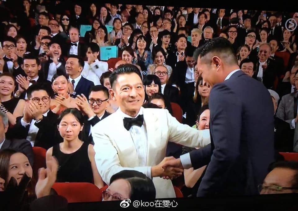 Trong đêm trao giải Kim Tượng vừa qua, khi được xướng tên với ngôi vị Ảnh đế, Cổ Thiên Lạc đã nhận được cái vỗ vai khích lệ từ đàn anh
