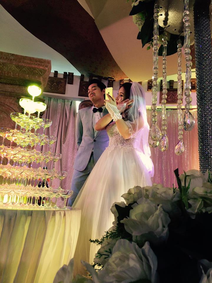 Trước khi cắt bánh cưới, rót rượu mừng cũng phải chụp ảnh cái đã.