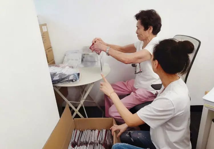 Dù đã 82 tuổi nhưng tinh thần bà vô cùng minh mẫn, động tác thành thạo nhanh nhẹn, không thua gì người trẻ tuổi. Dù đang chăm chú, miệt mài với việc đóng gói, thế nhưng mỗi lần bà ngước lên nhìn thấy con gái, lại nở một nụ cười mãn nguyện, vui vẻ hạnh phúc của tuổi già.