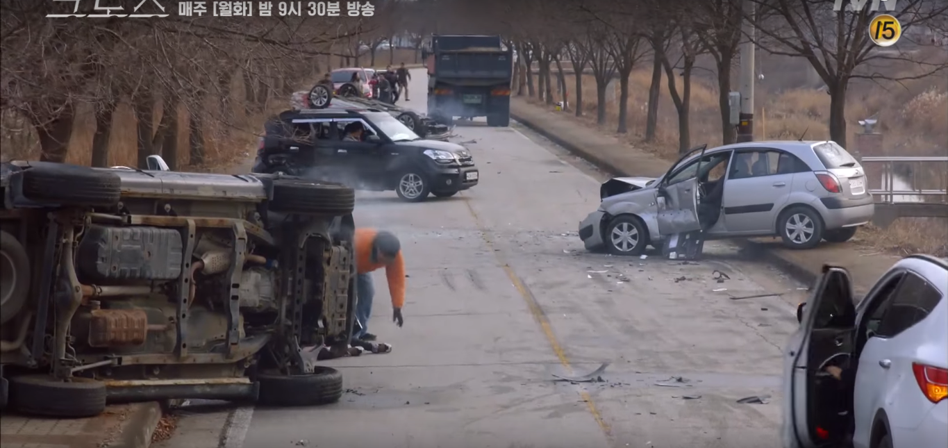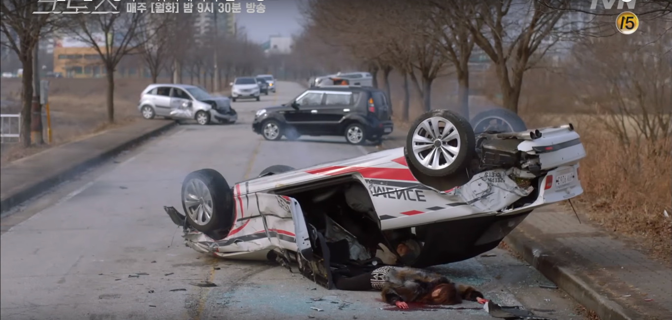 Cảnh In Kyu và Ji In gặp tai nạn trong phim.