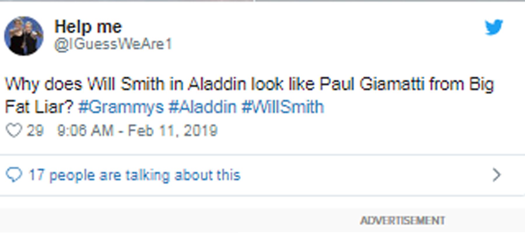 Tại sao Will Smith trong Aladdin lại nhìn giống Paul Giamatti trong Big Fat Liar nhỉ?