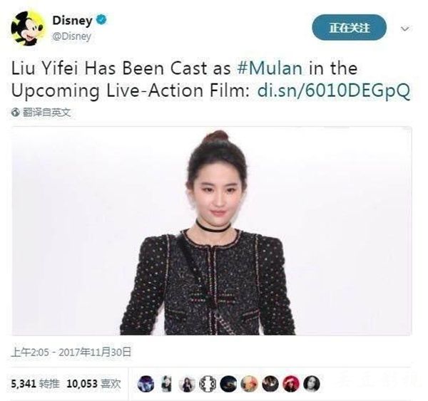 Lưu Diệc Phi sẽ hóa thân thành Hoa Mộc Lan được chính Disney thông báo trên toàn thế giới.