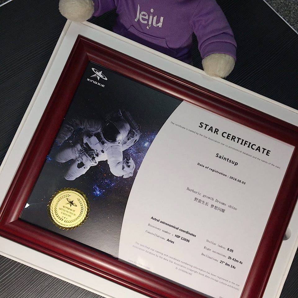 Fan Trung chia sẻ mua tặng Saint một vì sao trên trời cho thấy sự hâm mộ cuồng nhiệt của fan dành cho cậu.