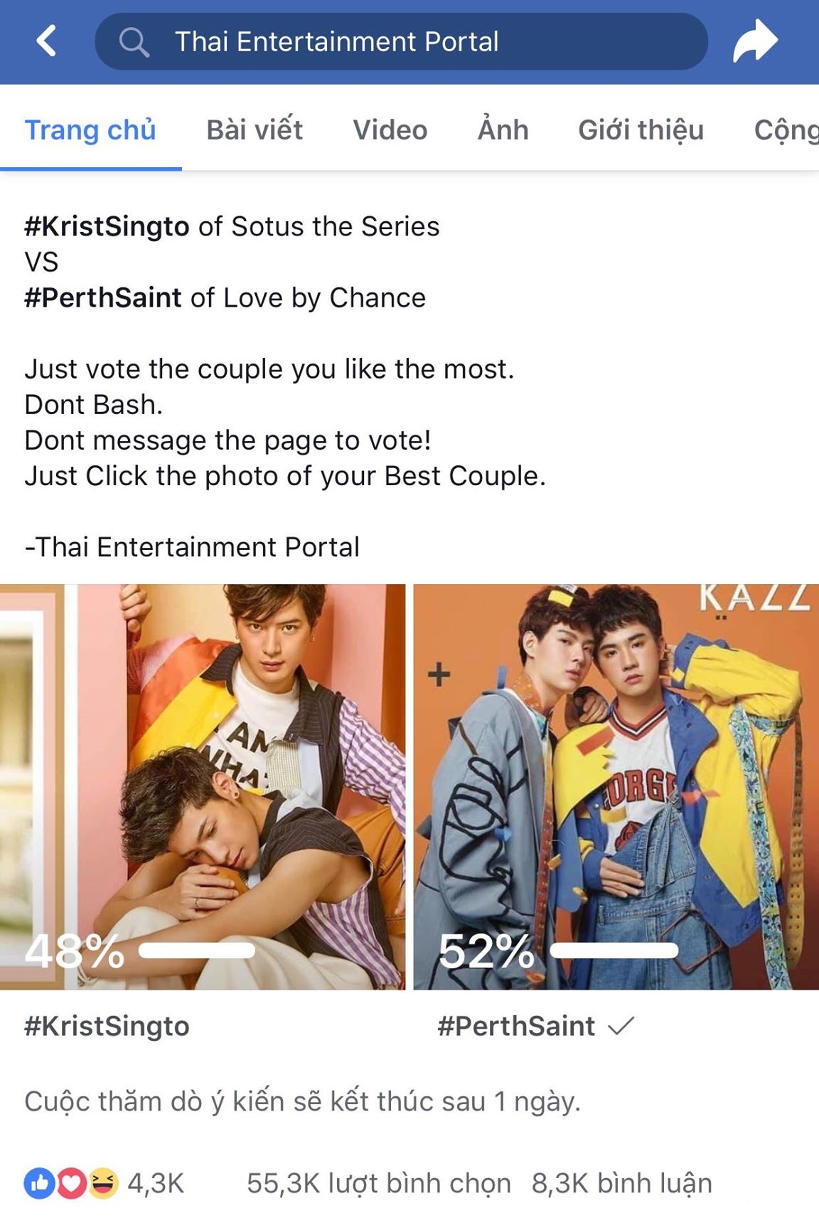 Mỗi khi xuất hiện cùng nhau, Perth - Saint sẽ lập tức trở thành cặp đôi được cư dân mạng bàn tán sôi nổi nhất. Topic tin tức về cả hai luôn giành vị trí đầu hoặc thứ 2.