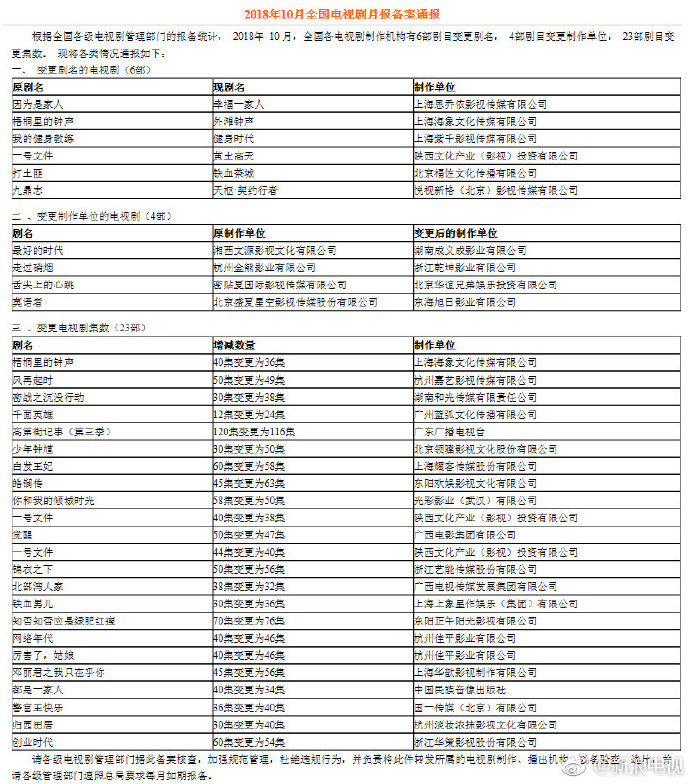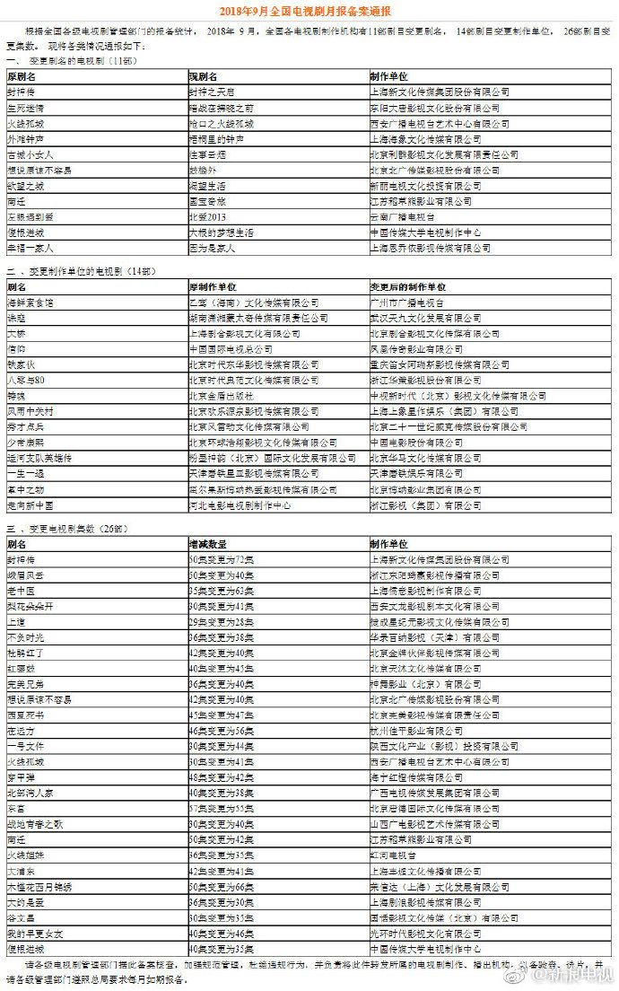 Trước giờ, bất kỳ bộ phim nào muốn được lên sóng đều phải qua ải kiểm duyệt. Rất nhiều bộ phim ban đầu dự tính với số tập rất cao đến khi công chiếu đều bị cắt giảm hết phần nào. Nhưng cũng có nhiều bộ phim lại được gia tăng số tập so với dự tính. Dưới đây là danh sách những dự án phim truyền hình được công chiếu toàn quốc có sự thay đổi về số tập do Tổng cục truyền hình công bố: