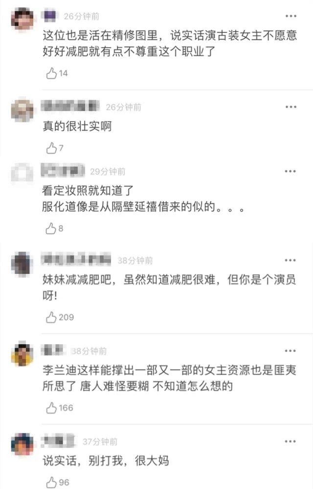 Vóc dáng của Lý Lan Địch không hề giống một cô gái thanh xuân 19-20 tuổi mà lại khiến dân mạng liên tưởng như một bà cô, nhiều người chỉ trích cho rằng nữ diễn viên trẻ không kính nghiệp nên mới không giảm cân để phù hợp với trang phục cổ trang. Không chỉ Lý Lan Địch, ngay cả những tạo hình của diễn viên nam trông giống Diên Hi công lược đến 80%.