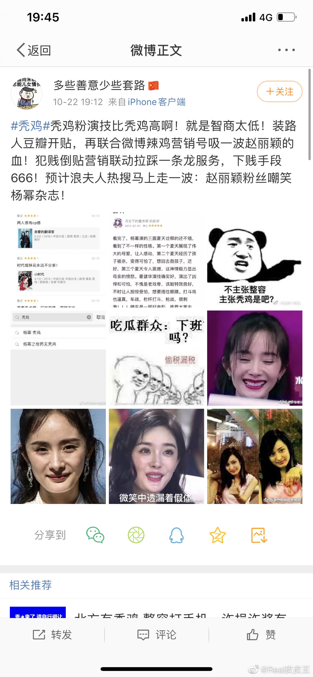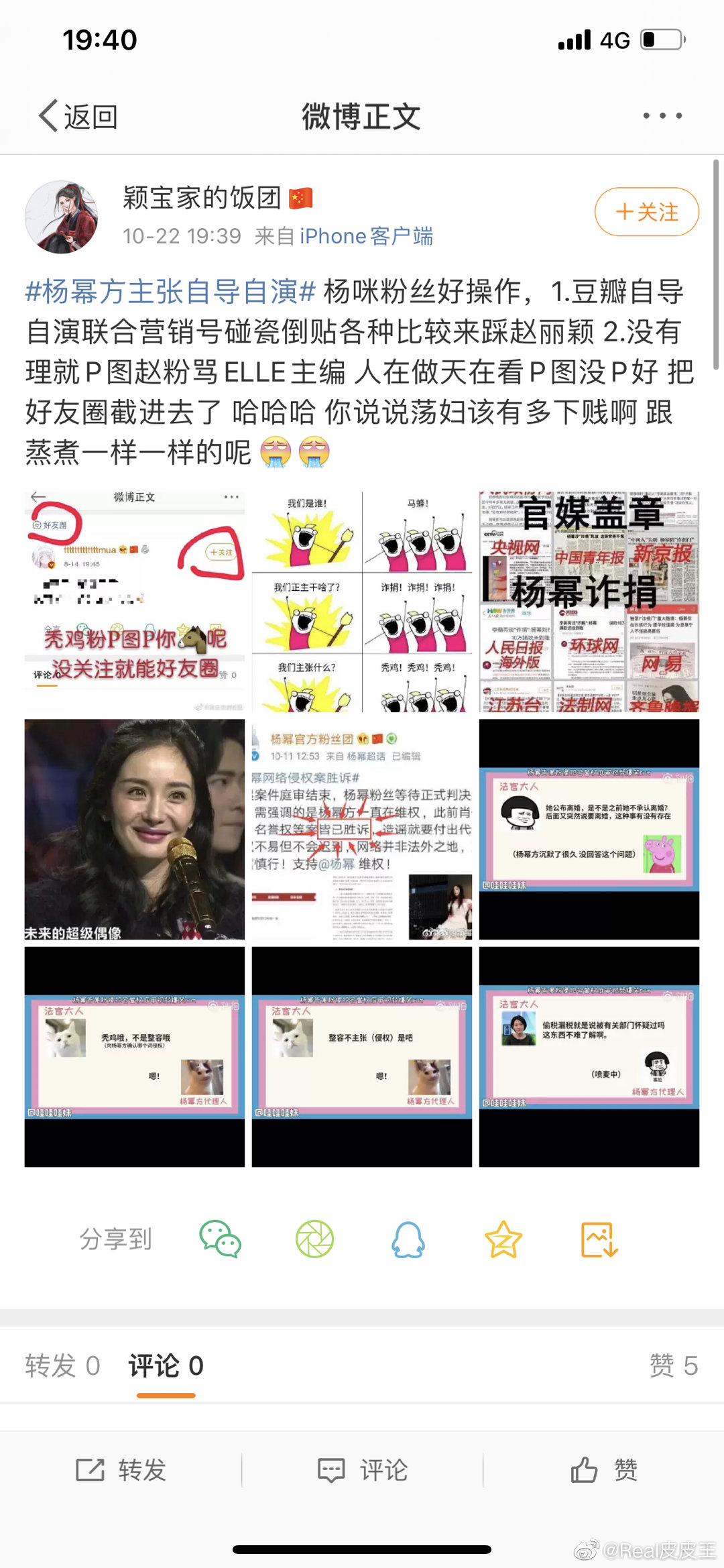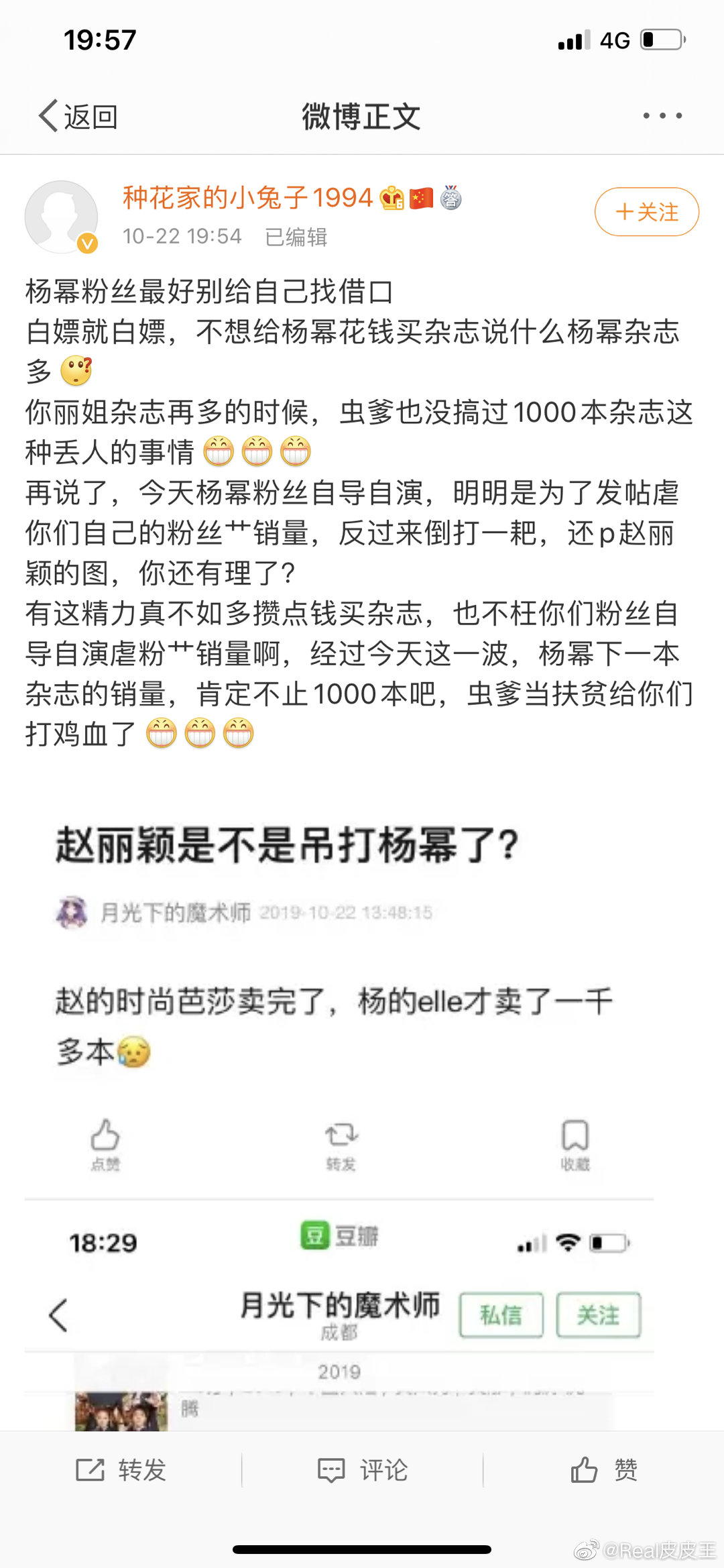 Bài viết tố phía Dương Mịch tự biên tự diễn bên Douban, phối hợp với doanh tiêu hào (bloggers), ăn vạ các loại để so sánh bôi nhọ Triệu Lệ Dĩnh. Không có lý lẽ thì photoshop ảnh fan Triệu Lệ Dĩnh mắng chủ biên ELLE….