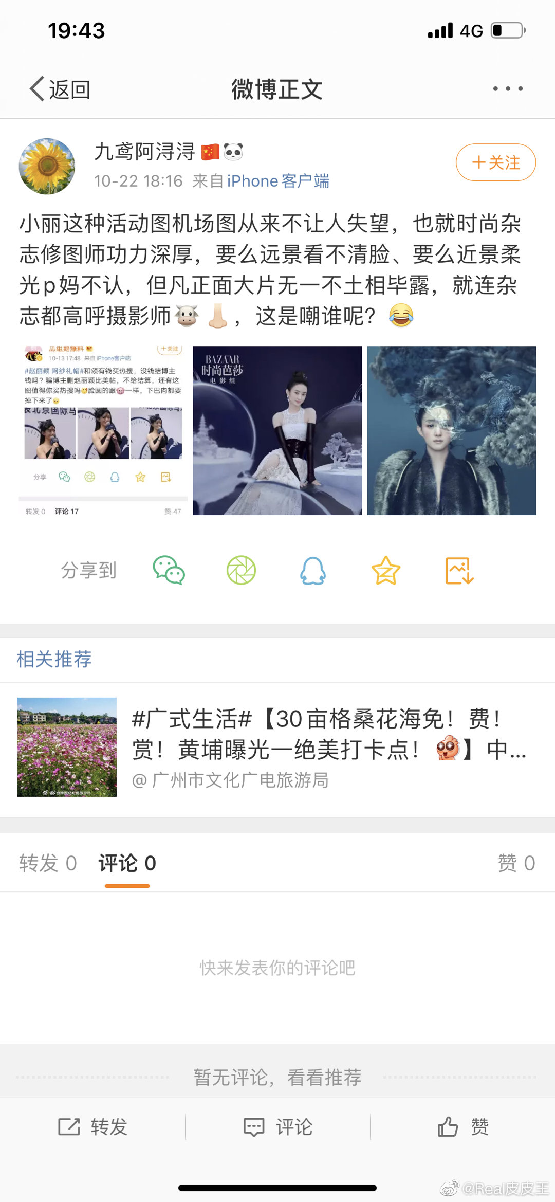 Fan Dương Mịch phản bác, lôi ảnh tạp chí của Triệu Lệ Dĩnh ra chế giễu: “Để có được những bức hình này là sự vất vả rất nhiều của thầy sửa ảnh. Ảnh xa thì nhìn không rõ mặt, gần thì ánh sáng dịu nhẹ ai cũng nhận không ra…”