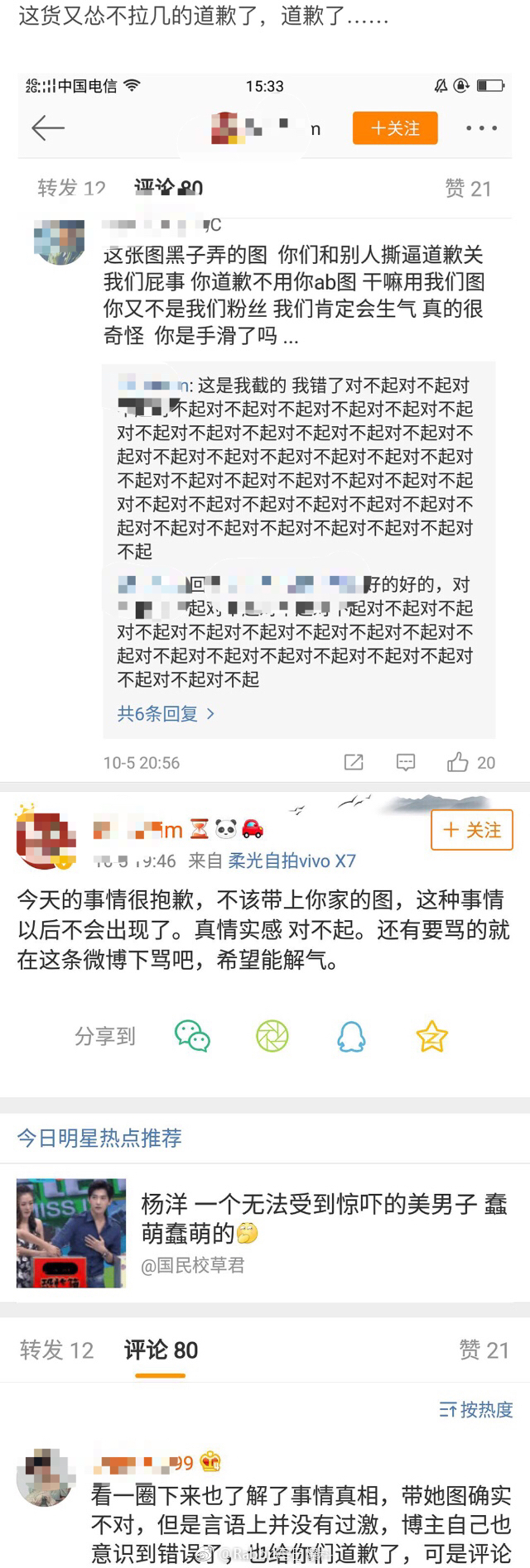 Sau đó khi cuộc hỗn chiến diễn ra thì một người dùng có tên là Mã Phong đã “tế sống ” bạn fan được cho là của nhà Angelababy đã đi mắng chửi người khác. Ngay lập tức, fan nhà Angelababy xuất hiện một cách thần kỳ lên tiếng xin lỗi. Nếu như xin lỗi và giải quyết mọi chuyện xong thì sẽ không có gì đáng nói nếu như kèm theo lời xin lỗi đó lại là tấm ảnh bôi nhọ Triệu Lệ Dĩnh.