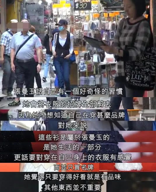 Trương Mạn Ngọc đối với những bộ quần áo mình mặc từng có giải thích như sau: Cô cho biết bản thân có một thói quen rất kỳ quái, chính là sẽ đem thương hiệu trên quần áo cắt đi. Mọi người đều biết, mua những quần áo nổi tiếng ngoại trừ chất liệu tốt, thiết kệ độc đáo ra thì rất nhiều người mua nó vì thương hiệu, nhưng Trương Mạn Ngọc lại không muốn. Cô cảm thấy không muốn biết bản thân mặc thương hiệu gì vì đối với cô quần áo chẳng qua cũng chỉ là một phần của cuộc sống chứ không phải là những cái thương hiệu kia.