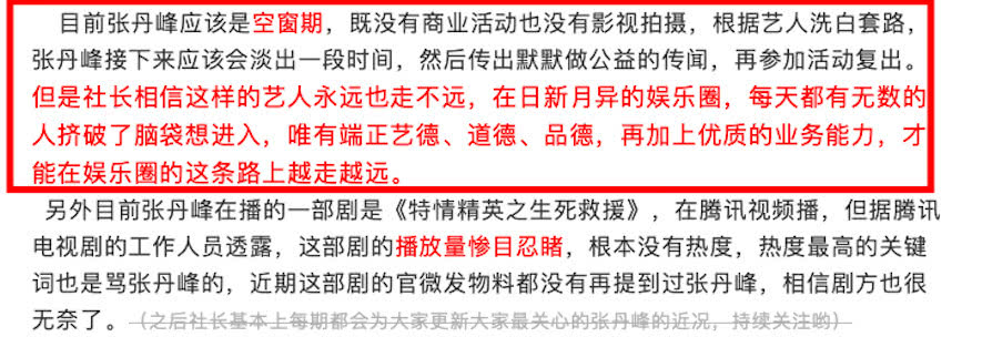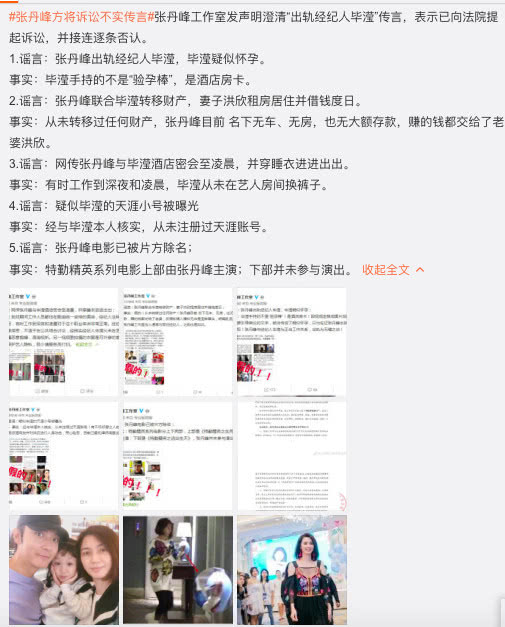 Trước đó không lâu, phòng làm việc của Trương Đan Phong liên tục đăng bài bác bỏ tin đồn nam diễn viên vượt quá giới hạn với người đại diện Tất Oánh, cũng bày tỏ sẽ dùng đến pháp luật truy cứu trách nhiệm kẻ tung tin thất thiệt, nhưng dân mạng đối với hành động này cũng mắt nhắm mắt mở, nửa tin nửa nghi ngờ.