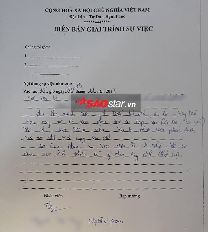 Biên bản được quản lý rạp lập tại hiện trường.