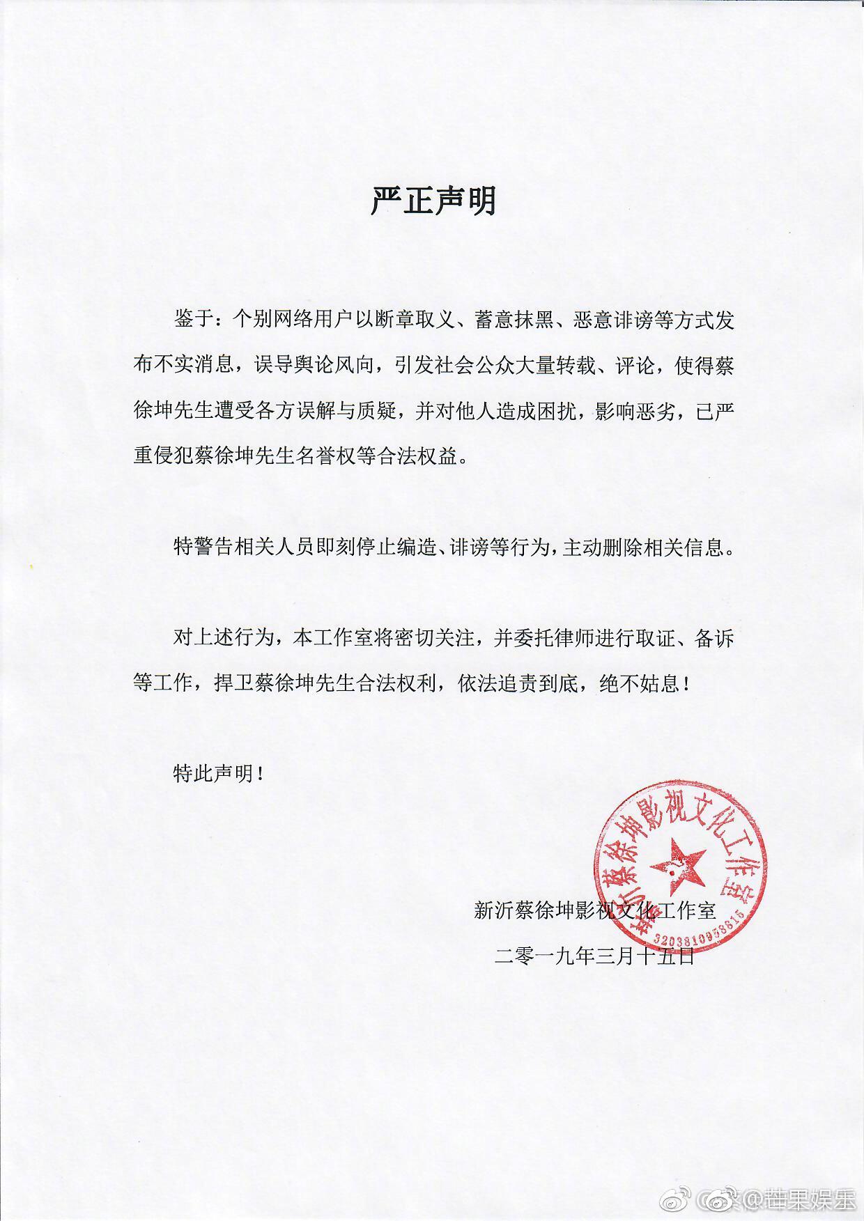 Ngoài ra studio cũng đưa ra thông cáo lên án những người lợi dụng sự việc để bôi nhọ danh dự nhân phẩm của Thái Từ Khôn.