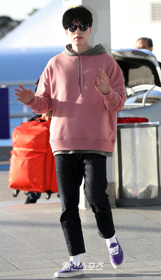 Vào sáng ngày 17/11, nam diễn viên Lee Dong Wook bất ngờ xuất hiện tại sân bay quốc tế Incheon để lên đường đến Đài Loan thực hiện lịch trình ở nước ngoài của mình. “Thần chết” nhanh chóng thu hút mọi ánh nhìn của người hâm mộ và phóng viên từ nhiều tờ báo khác nhau khi diện trên người chiếc áo màu hồng nhạt, quần kaki đen, đeo mắt kính, giày thể thao tím. Ngôi sao 37 tuổi bừng sáng hơn với làn da trắng, môi hồng và thực sự trông giống như nhiều nam idol trẻ khác ở độ tuổi 20.
