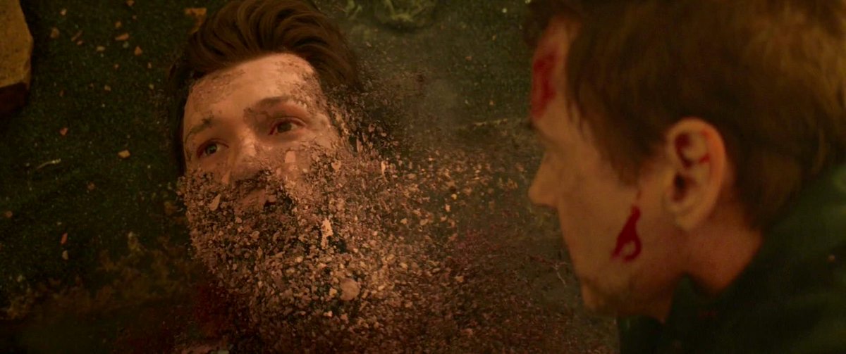 Còn Spider Man đã tan biến sau cái búng tay của Thanos.