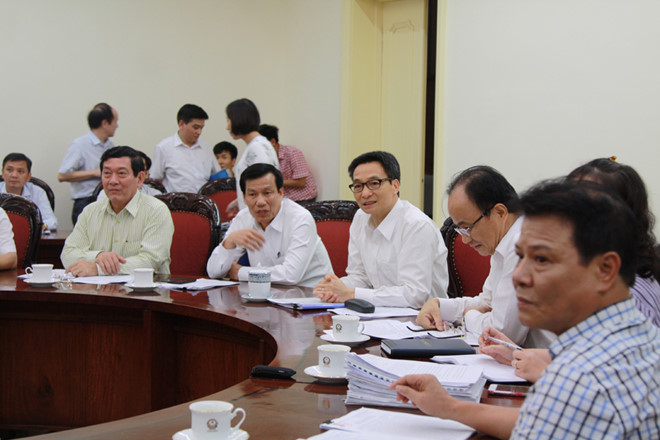 Buổi làm việc giữa Bộ trưởng Nguyễn Ngọc Thiện và các bên liên quan. Ảnh: VH.
