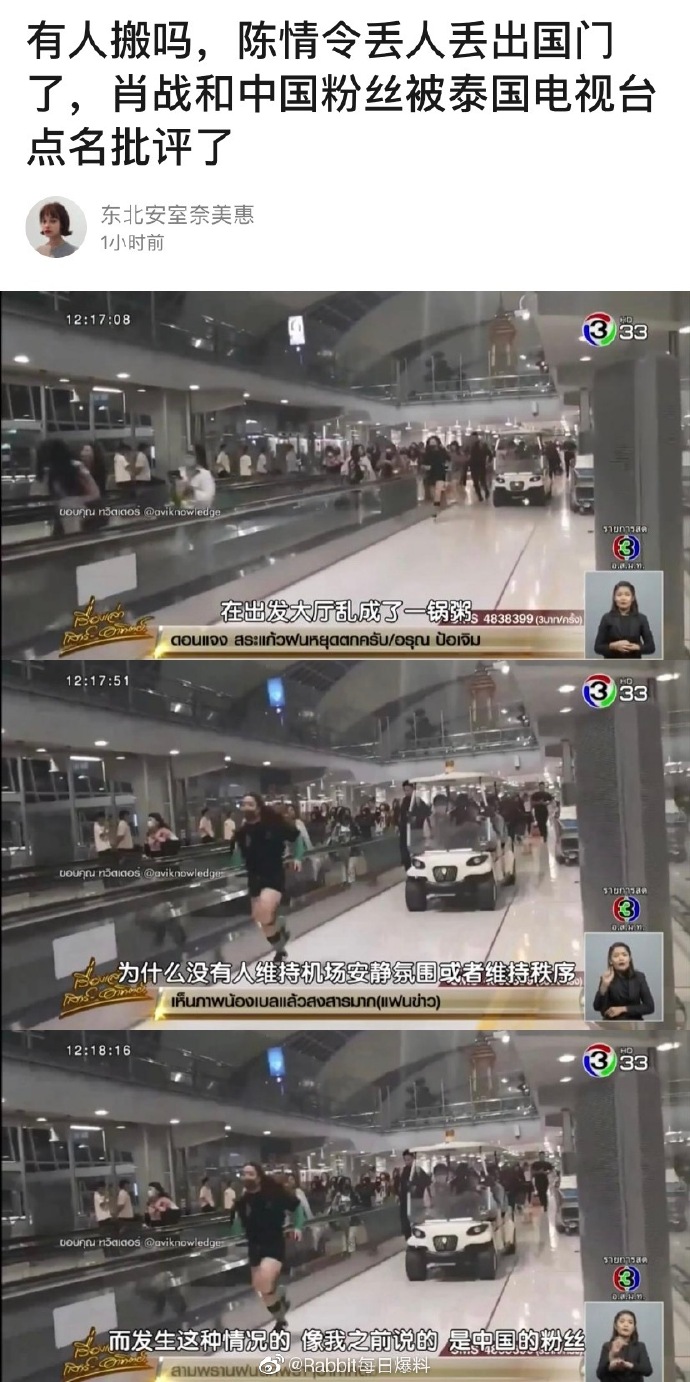Và mới đây, đài truyền hình Thái Lan cũng đã điểm danh phê bình fan của Trần tình lệnh, đặc biệt nhắc đến những fan hâm mộ của Tiêu Chiến ở sân bay đón thần tượng gây ra mất trật tự. Rất nhiều fan tỏ ra không hài lòng với bài viết này trên Weibo, đơn giản vì sân bay nhiều người như vậy làm sao xác định được ai là fan Tiêu Chiến mà lại chỉ đích danh fan anh để phê bình.