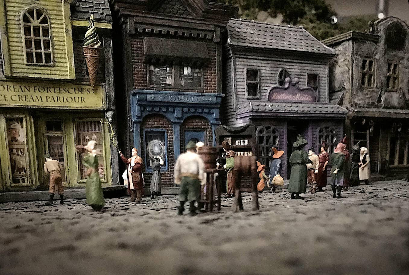 Những địa điểm của Thế giới Phù thủy được các fan yêu thích nhất như ngôi nhà của bác Hagrid, hay làng Hogsmeade có món đặc sản bia bơ cực kỳ nổi tiếng tại quán Ba Cây Chổi, cho đến Hẻm Xéo, đều được anh Rigby tái hiện một cách chi tiết đầy tỉ mỉ qua những mô hình với nhiều kích thước khác nhau, nhiều mô hình với tỉ lệ khác nhau.