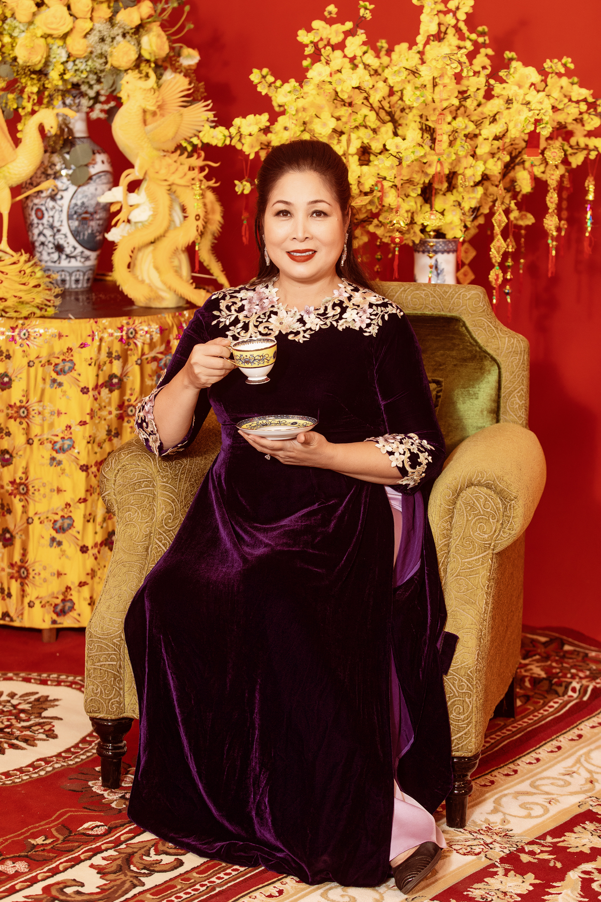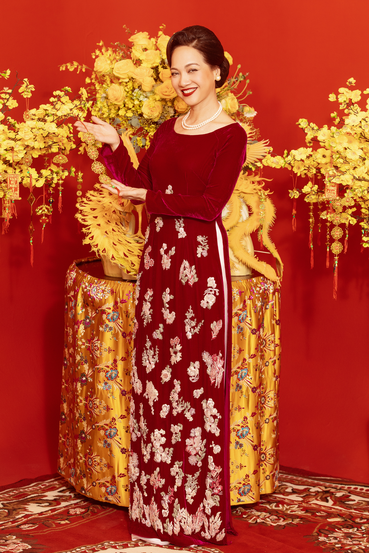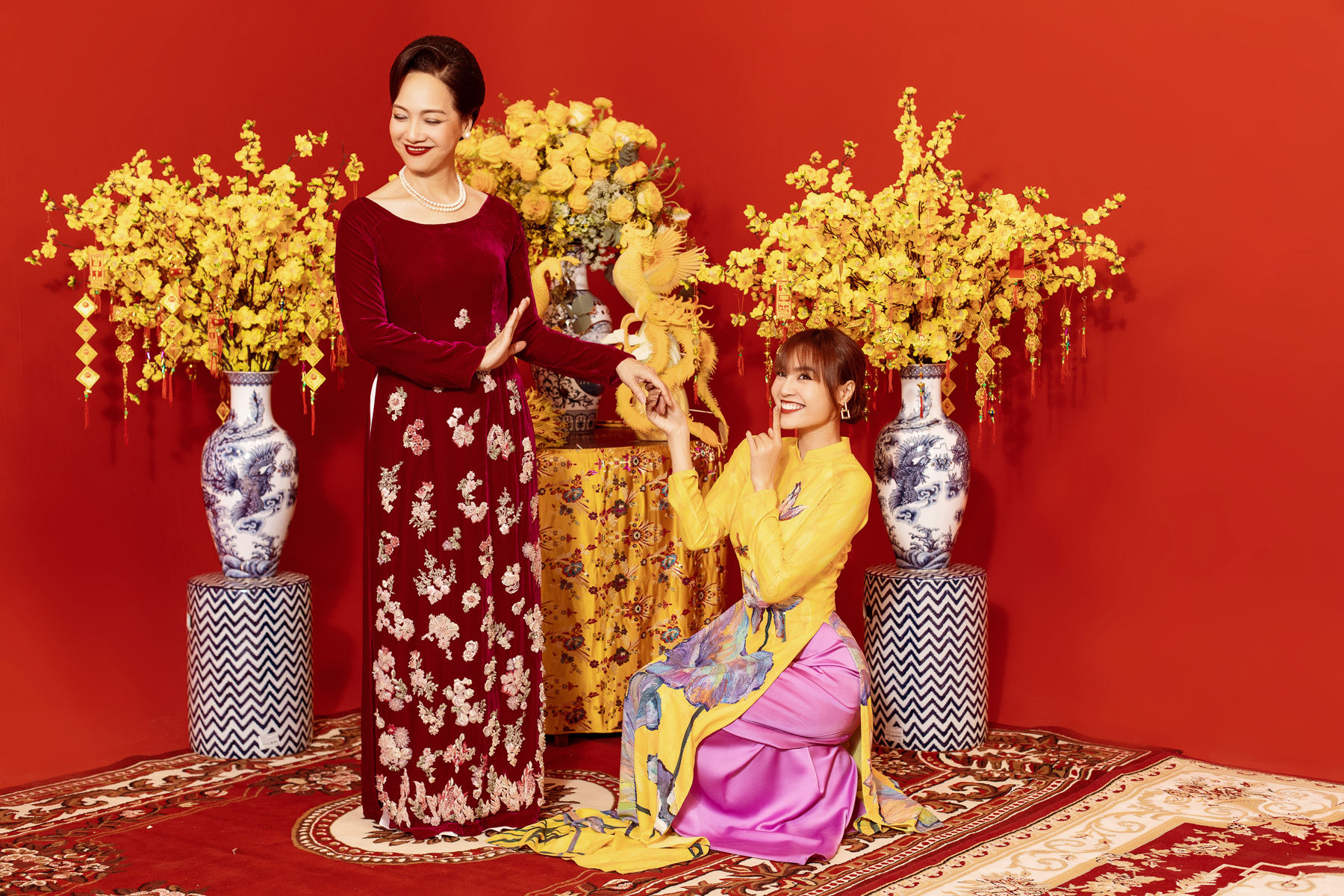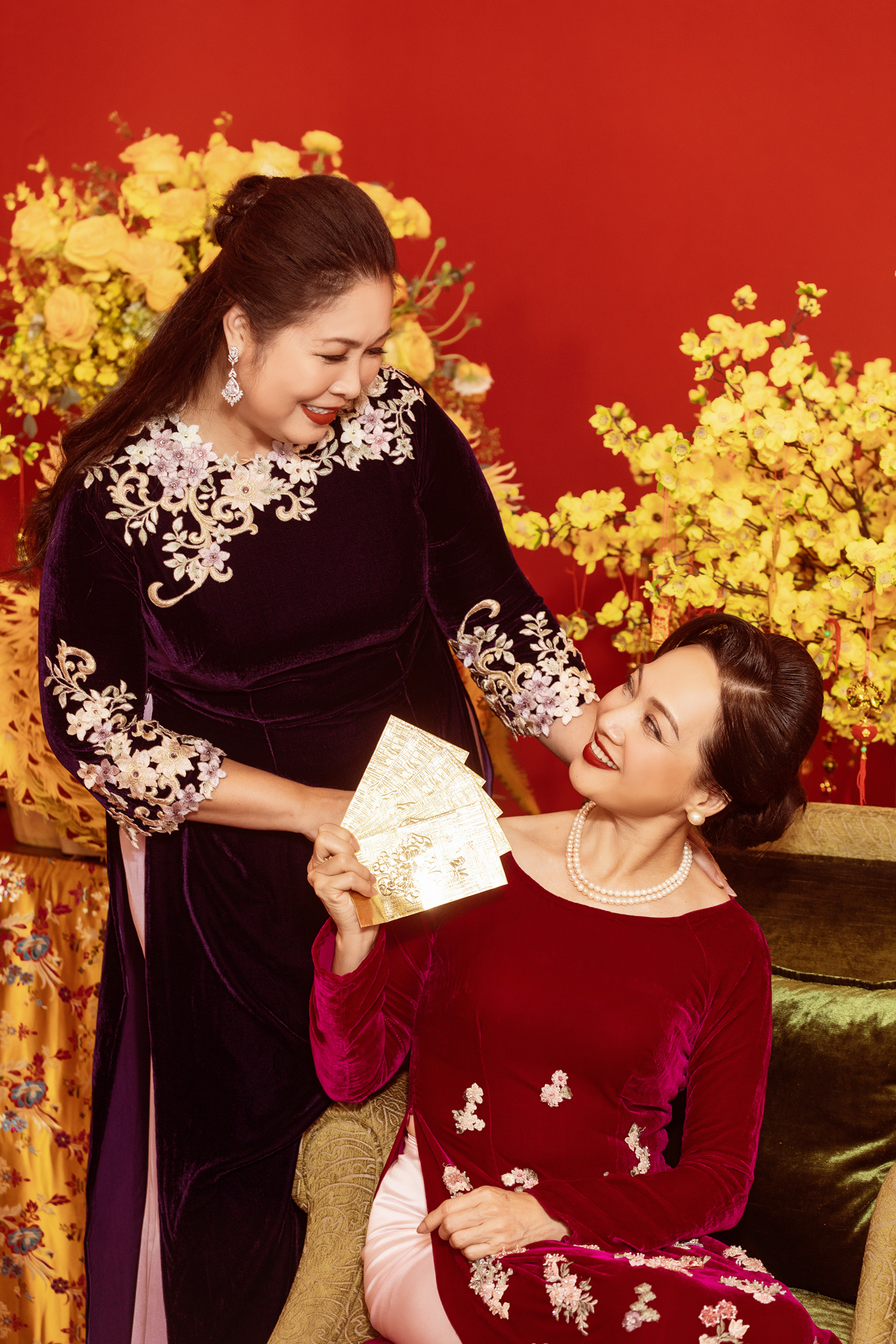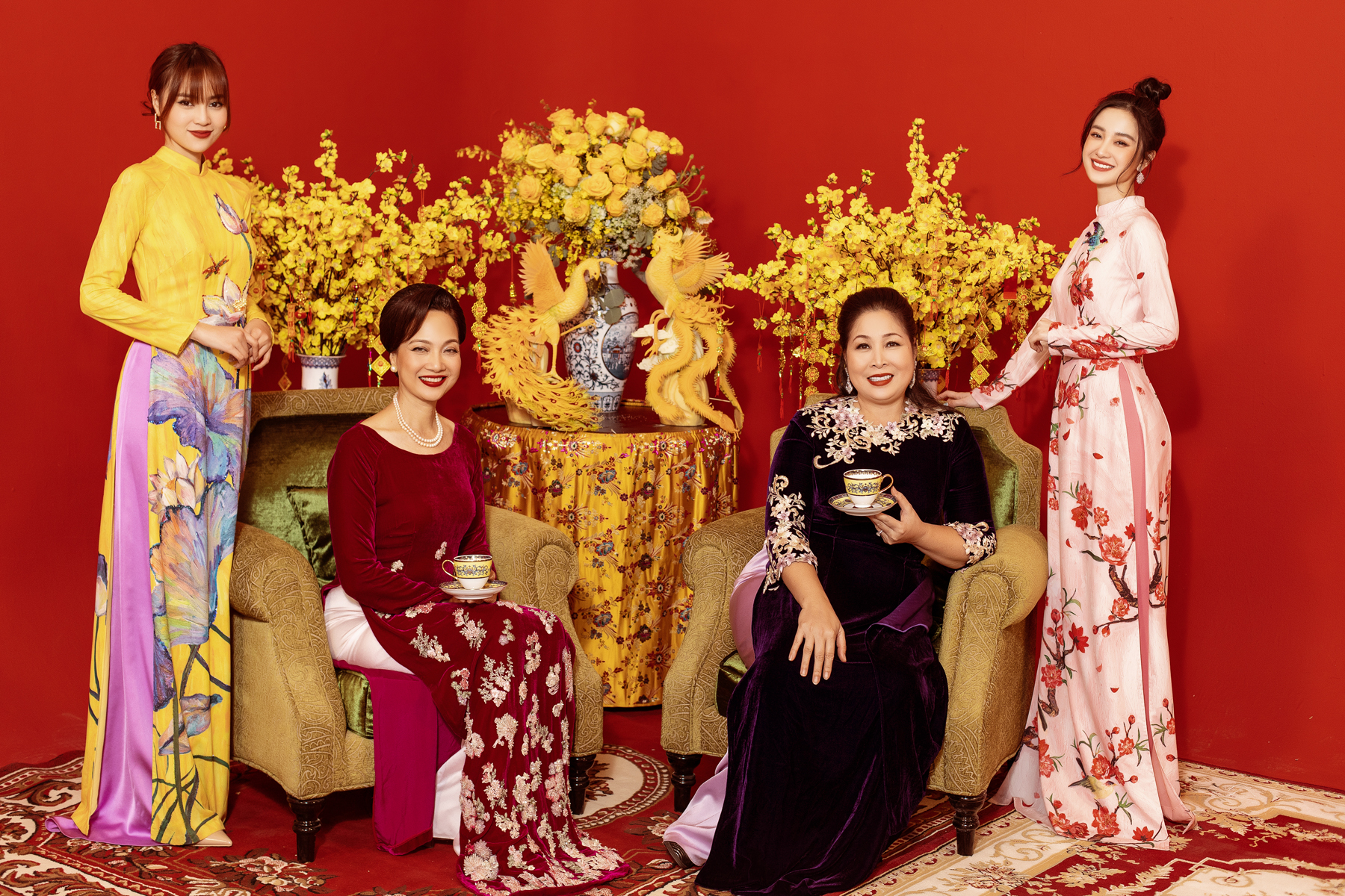 Dàn nhân vật sang chảnh quây quần trong trang phục áo dài ngày Tết.