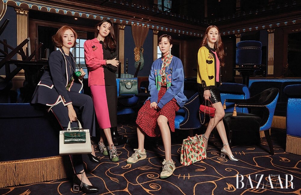 Đầu tiên là bộ ảnh của bộ tứ quyền lực của SKY Castle bao gồm Yeom Jung Ah, Yoon Se Ah, Lee Tae Ran và Oh Na Ra, họ đã có cơ hội xuất hiện trên tạp chí Harper's Bazaar cùng nhau.