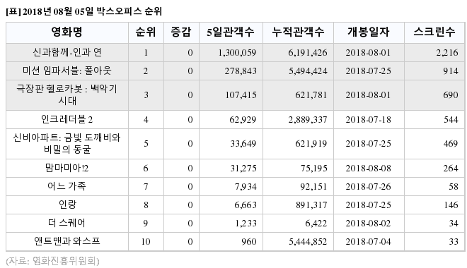 Vào cuối ngày 05/08, theo Lotte Entertainment, siêu phẩm mùa hè Thử thách thần chết: 49 ngày cuối cùng (Along With the Gods: The Last 49 Days - 신과함께-인과 연) với sự góp mặt của những ngôi sao hạng A trong làng giải trí K-biz như Ha Jung Woo, Lee Jung Jae, Ma Dong Seok, Joo Ji Hoon, Kim Hyang Gi, Kim Dong Wook….cùng nhiều diễn viên khác đã chính thức “lên ngôi” sau khi đạt đến con số không tưởng, 6.191.426 người xem chỉ sau năm ngày công chiếu.