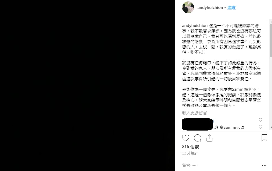 Hứa Chí An thành khẩn: “Đầu tiên trong buổi họp báo này, tôi muốn đích thân nói lời xin lỗi với tất cả mọi người, đây là lời xin lỗi xuất phát từ đáy lòng của tôi. Tôi phải vì người nhà của tôi, vì người nhà của Sammi, bạn bè và những người yêu thương tôi mà nói tiếng xin lỗi này, bởi vì tôi đã làm một chuyện không thể được tha thứ. Và cái sai này, tôi sẽ phải cảnh tỉnh bản thân mình hơn. Cho nên ngày hôm nay, ngay tại đây, tôi muốn gánh trách nhiệm của mình.”