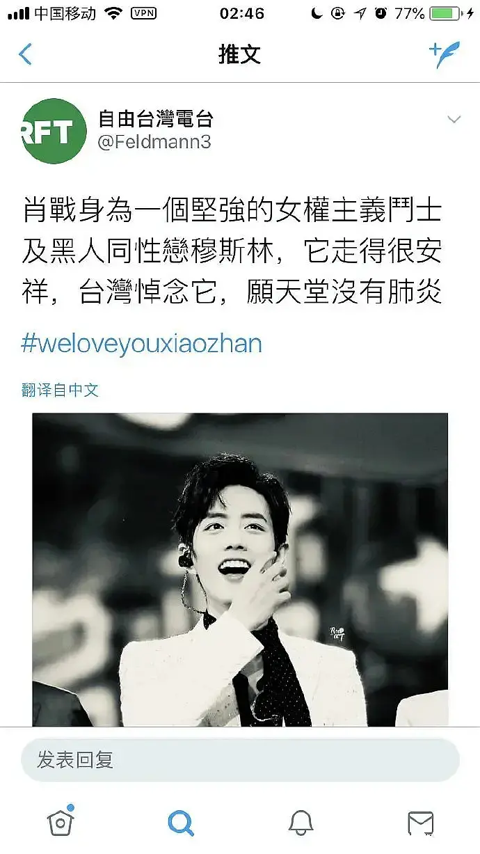 Thế nhưng, cũng chính vì việc này đã gây ra hiểu lầm lớn cho cư dân mạng nước ngoài, họ tưởng rằng Tiêu Chiến là minh tinh đồng tính và đã qua đời nên công ty quản lý của anh mới treo avatar màu đen lên và bắt đầu tưởng niệm anh chàng: “Nghe bảo minh tinh đồng tính người Trung Quốc mới qua đời vì virus corona. Thật đau lòng, mong anh an nghỉ”. Hài hước nhất chính là fan hâm mộ Tiêu Chiến để hashtag “#Weloveyouxiaozhan” dẫn đến cư dân mạng nước ngoài càng hiểu lầm hơn khi trước đó từng có hashtag “#WeloveyouKobe” (huyền thoại bóng rổ Mỹ qua đời vào tháng 1 vừa qua).