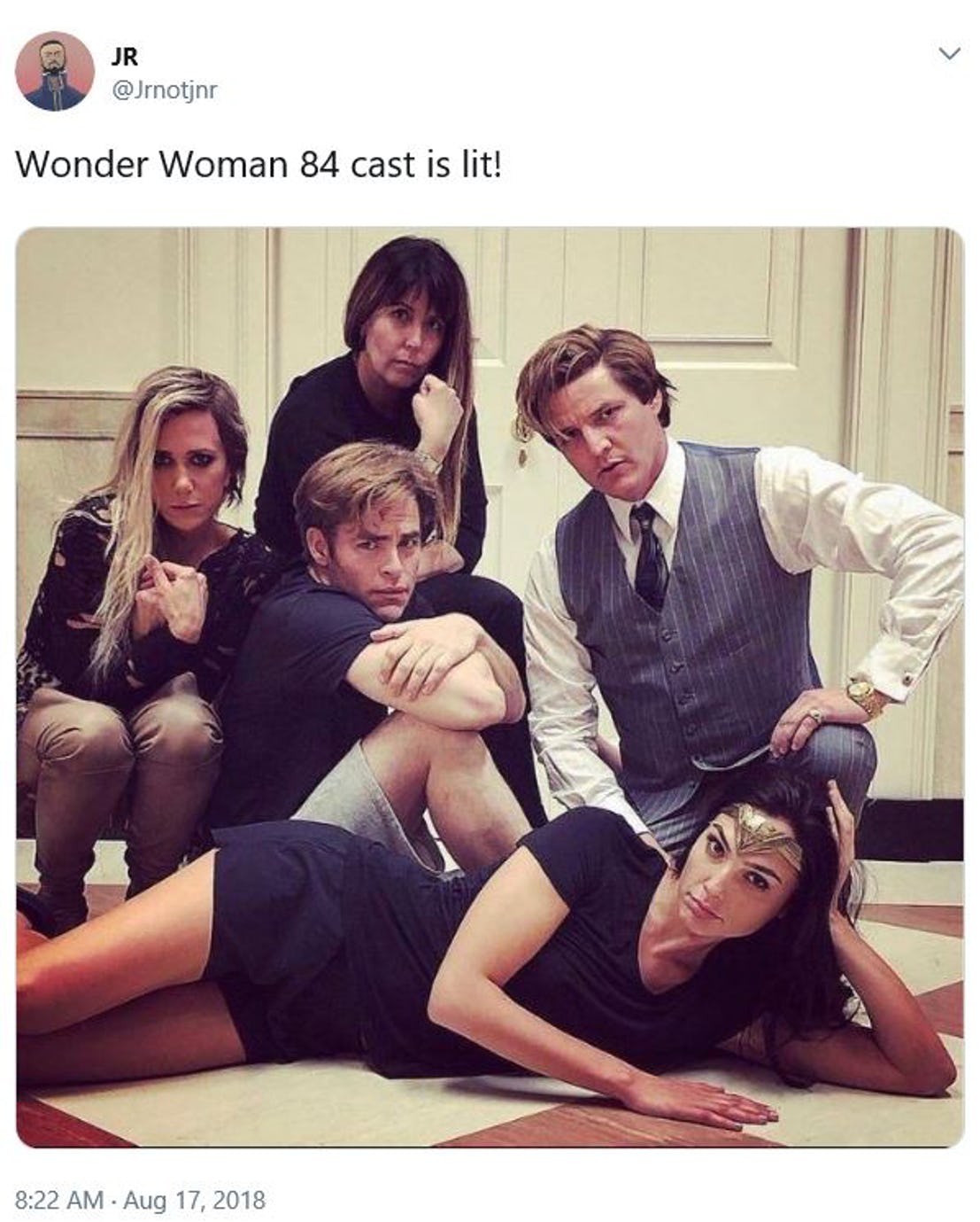 Mới đây, một hình ảnh chụp chung của cả 5 người (Gal Gadot, Patty Jenkins, Chris Pine, Kristen Wiig, Pedro Pascal) đã được đăng tải trên tài khoản Twitter cá nhân của Pedro. Dù nhanh chóng bị gỡ xuống nhưng bức ảnh vui nhộn này đã được rất nhiều người hâm mộ truyền tay nhau. Trong ảnh, 5 người đang diễn lại bức poster nổi tiếng của bộ phim The Breakfast Club (1985) và cùng phô ra vẻ mặt cau có, nghiêm trọng. Riêng Gal Gadot còn đội chiếc vòng trán đặc trưng cho nhân vật Wonder Woman của cô.