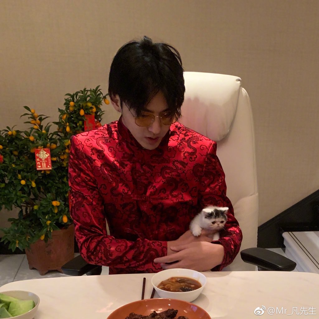 Ngô Diệc Phàm đăng ảnh chúc mừng năm mới, khoe mèo cưng bên bữa ăn tất niên.