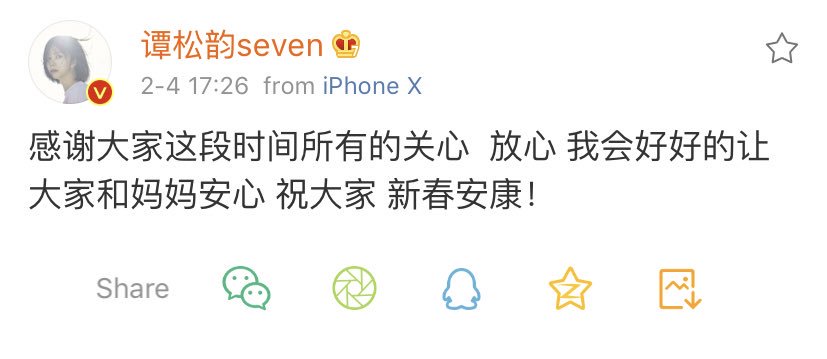 Nữ diễn viên viết: “Cảm ơn tất cả mọi người trong khoảng thời gian này, đừng lo lắng, tôi sẽ để mọi người và mẹ yên lòng về mình. Chúc mọi người sức khỏe và hạnh phúc”.