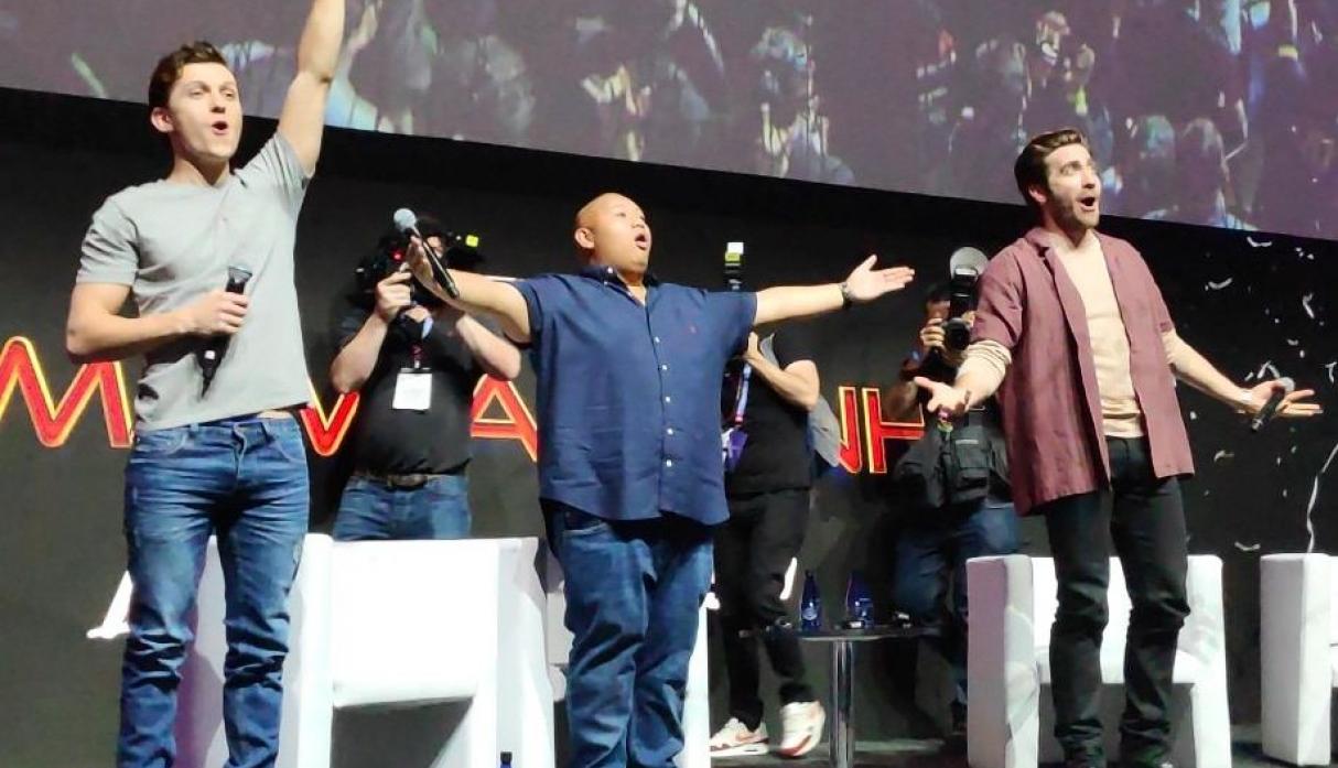 Sự kiện chưa dừng lại ở đó khi các fan trở nên phấn khích với màn “đánh úp” của các ngôi sao trong một tựa phim khác sắp tới của MCU là Spider-Man: Far From Home. Mở đầu với Jacob Batalon giả vờ như đang nói chuyện với anh bạn Người Nhện của mình qua điện thoại, sau đó thì nam chính Tom Holland bất ngờ bước ra cùng bạn diễn Jake Gyllenhaal khiến khán phòng vỡ oà. Lần này, Gyllenhaal tham gia dự án Far From Home với vai diễn kẻ phản diện Mysterio đối địch với nhân vật Peter Parker của Holland.
