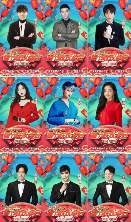 Hồ Nam: Lưu Vũ Ninh, Lý Vũ Xuân, Châu Bút Sướng, Justin Hoàng Minh Hạo, Kim Hạn, Lưu Ngạn Tuấn, Vương Nhất Bá, Châu Khiết Quỳnh, Trương Tân Thành, nhóm nhạc YHBOYS…