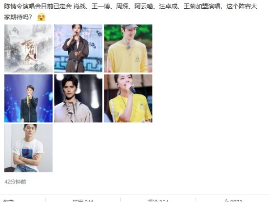 Cuối cùng, đoàn phim cũng đã xác định khách mời của buổi biểu diễn, không chỉ là Tiêu Chiến, Vương Nhất Bác, còn có Uông Trác Thành, A Vân Cát, Châu Thâm, Vương Cúc cũng tham gia.