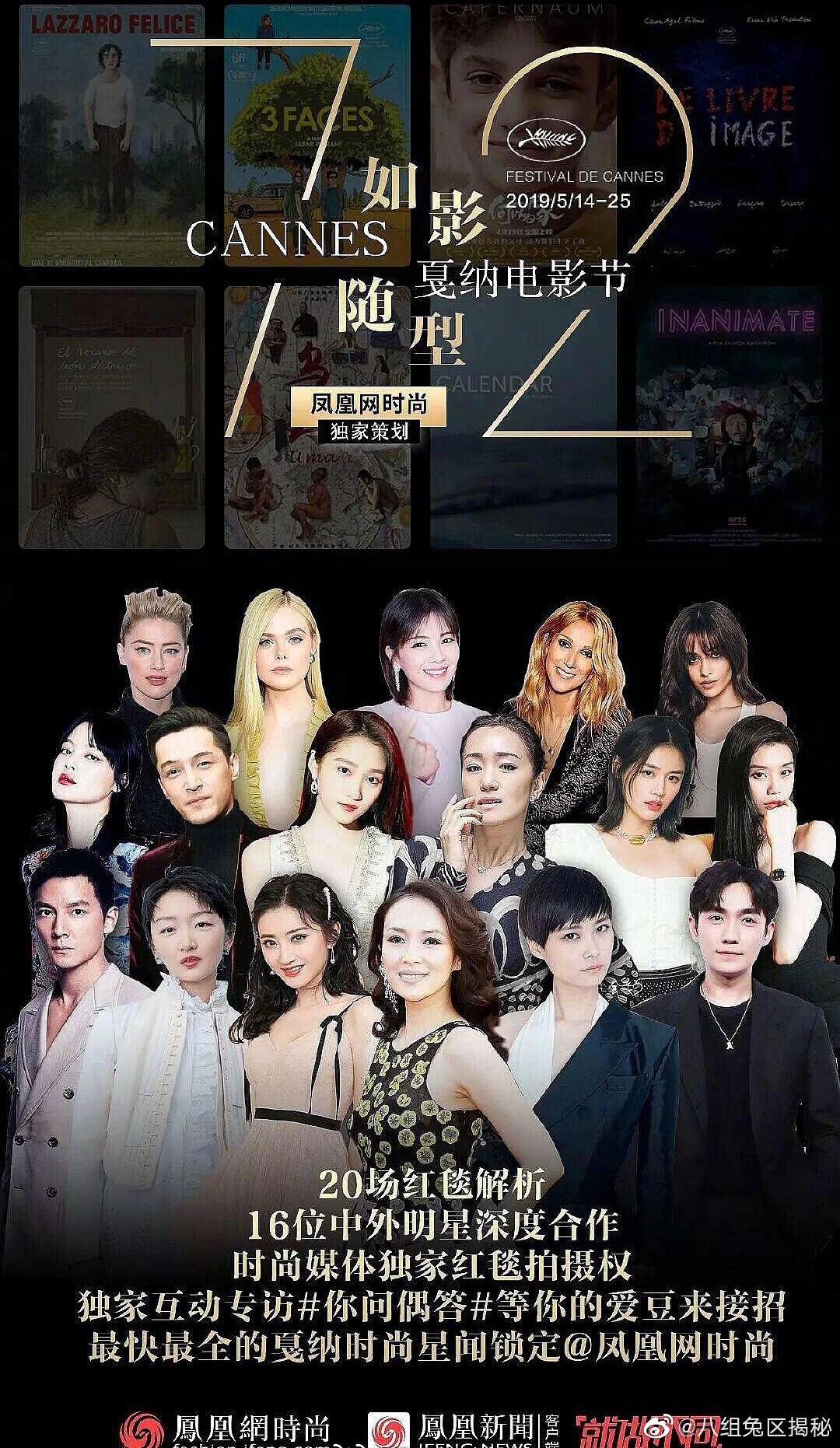 Mới đây, truyền thông Hoa ngữ đã chia sẻ tấm poster công những nghệ sĩ nổi tiếng của làng giải trí sẽ tham dự Liên hoan phim quốc tế Cannes lần thứ 72 năm 2019 (2019 Cannes Film Festival) với tư cách là khách mời. Sự kiện sẽ diễn ra ở Palais des Festivals, Cannes, Pháp từ ngày 14 đến ngày 25/05.