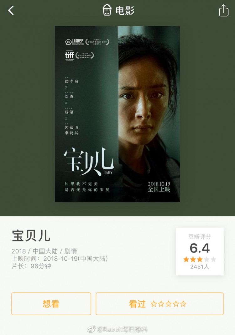 Bảo Bối Nhi - bộ phim điện ảnh do Lưu Kiệt làm đạo diễn với sự tham gia của các diễn viên Dương Mịch, Quách Kinh Phi, Lý Hồng Kỳ…. kể về Giang Manh một người con gái vì khuyết tật nghiêm trọng bị cha mẹ tử bỏ đã cứu một đứa đứa trẻ sơ sinh khác mà cha mẹ đã tuyên phán “tử hình”.