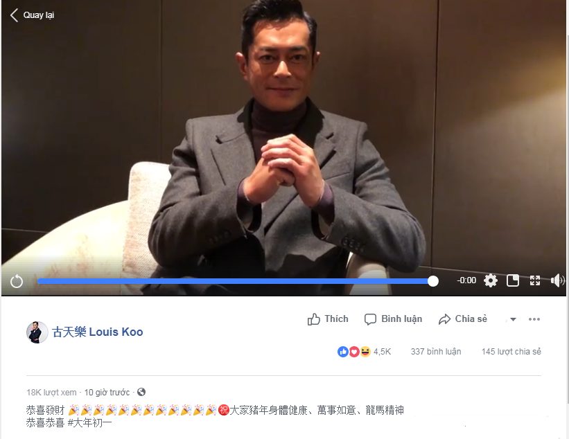 Cùng không khí đón Tết rộn ràng, Ảnh đế Cổ Thiên Lạc cũng “kịp thời” gửi clip chúc mừng đến fan hâm mộ. Diễn viên Mã Quốc Minh, Quách Tấn An, Vương Tổ Lam và Chung Gia Hân cũng đăng ảnh đón Tết trên khắp “mặt trận” mạng xã hội.