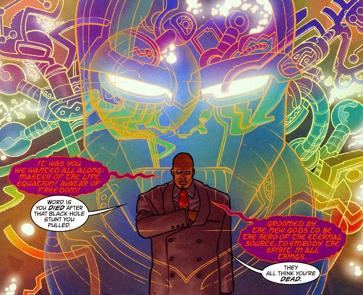 Darkseid nói rằng hắn đã được hợp nhất bởi những avatar từ trước đến nay và trở lại "true form", với quyền năng vượt xa cả bản thân hắn của thời kỳ Pre-Crisis. Lấy chân dẫm lên Quintessence, “True Darkseid” tuyên bố hắn chính là chương cuối của mọi câu chuyện, là kết thúc của vạn vật.