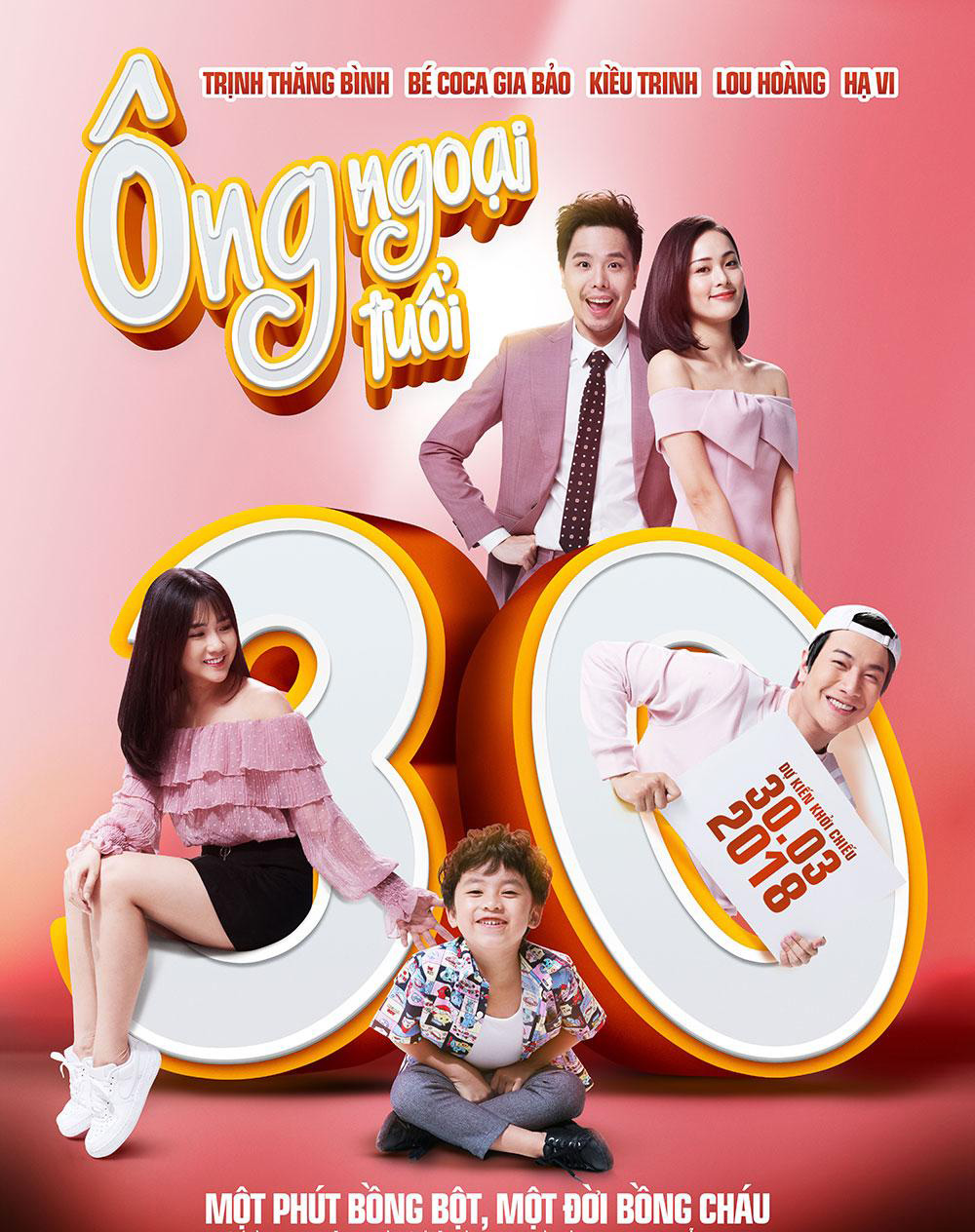 Ông ngoại tuổi 30 là phim điện ảnh Việt hóa từ bản gốc Scandal Makers của Hàn Quốc, do đạo diễn Võ Thanh Hòa cầm trịch cùng sự tham gia diễn xuất của Trịnh Thăng Bình, Kiều Trinh, Hạ Vi, bé Coca Gia Bảo… Mới đây, theo thông tin từ phía nhà sản xuất, bộ phim đã đoạt doanh thu 35 tỷ đồng sau 13 ngày công chiếu. Dẫu con số này chưa phải quá lớn so với những bom tấn Việt hóa khác như Em là bà nội của anh, Tháng năm rực rỡ, Bạn gái tôi là sếp…, nhưng doanh thu của Ông ngoại tuổi 30 cũng là lời động viên cho ekip sản xuất.