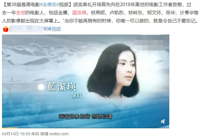 Ngày 3 tháng 11 năm 2018 được xem là chấn động của ngành giải trí Hoa ngữ khi nữ diễn viên nổi tiếng một thời Lam Khiết Anh qua đời tại căn nhà riêng của mình, hưởng thọ 55 tuổi. Không ít fan hâm mộ, bạn bè, đồng nghiệp và người thân vô cùng đau lòng trước sự ra đi đột ngột của cô. Mới đây, trong lễ khai mạc điện ảnh Hong Kong lần thứ 28, ban tổ chức cũng đã có sự tưởng niệm đến ngôi sao quá cố của TVB.