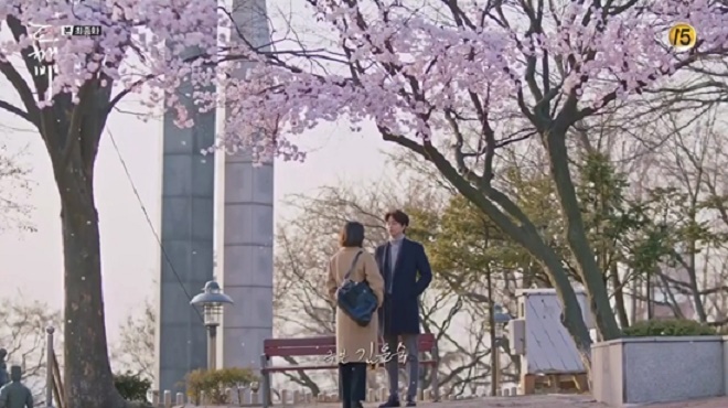 Một câu chuyện lãng mạn nữa có kết thúc đẹp giữa khung cảnh rừng đào nở rộ. Không những vậy, trong The King 2 Hearts, nhà Vua Jae Ha (Lee Seung Gi) đã quỳ xuống để cầu hôn Hang Ah (Ha Ji Won) - hoàng hậu duy nhất của mình.