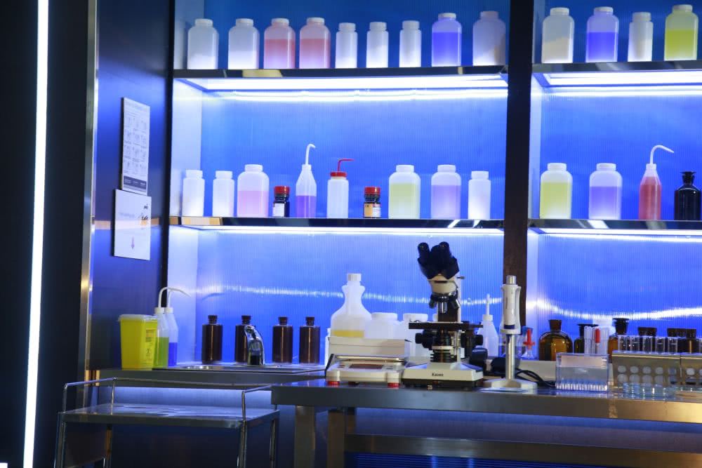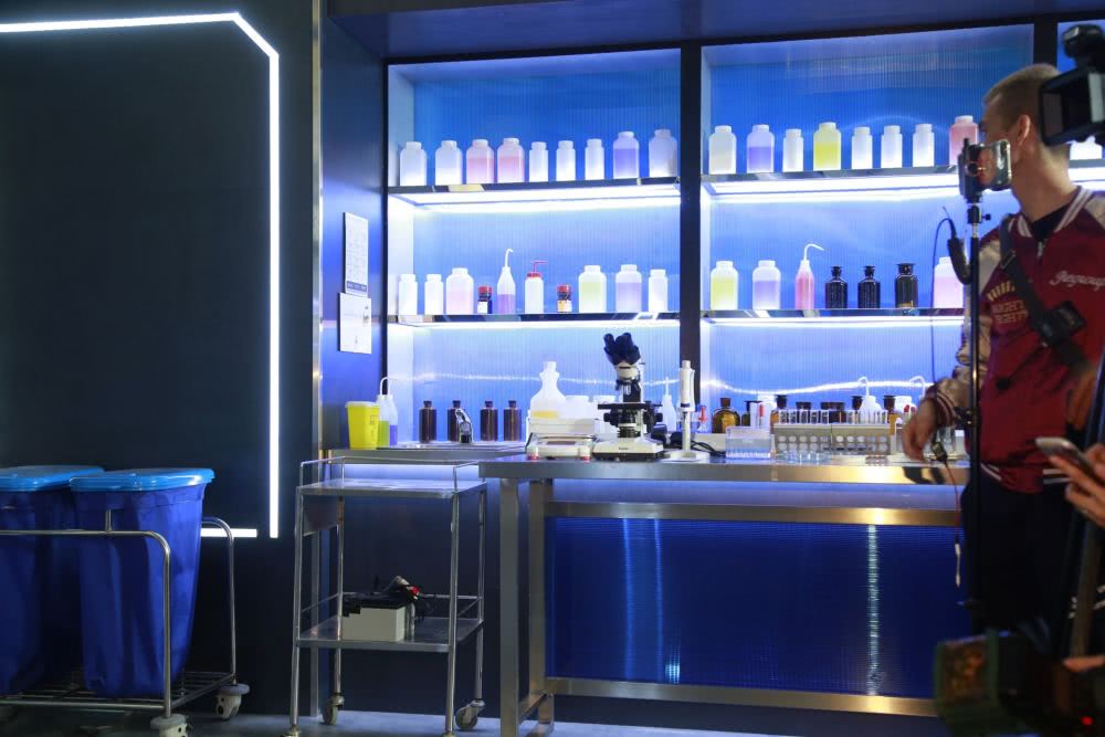 Có thể thấy, tất cả những ống nghiệm cần có đều có đủ, ngoài ra còn có kính hiển vi thế hệ mới, thuốc nước sinh hóa, nơi làm thí nghiệm, các loại dao phẫu thuật khác nhau, mô hình người, bàn phẫu thuật… mọi thứ đều có đủ. Được biết, những thứ này đều do giám chế Mai Tiểu Thanh đi khảo sát thực tế và quay về xây dựng lại tại xưởng quay của TVB.