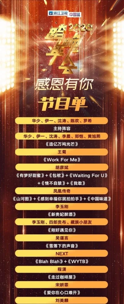 Tối qua, những đài truyền hình lớn ở Trung Quốc đều tổ chức những đêm diễn mừng năm mới, chào đón năm 2020. Nếu như so với những đài truyền hình khác như Đông Phương, Hồ Nam, Bắc Kinh… quy tụ những ngôi sao đỉnh cấp lưu lượng thì đêm mừng gala bên đài Chiết Giang lại có phần ảm đạm hơn hẳn.