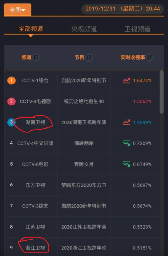 Đêm diễn đài Chiết Giang diễn ra trong sự tẩy chay của dư luận. Rating đêm Gala mừng năm mới 2020 thấp nhất trong lịch sự của đài truyền hình Chiết Giang từ khi thành lập đến giờ. Trước đây, nhà đài này luôn là đối thủ đáng gờm của đài Hồ Nam, cạnh tranh gay gắt một chín một mười rating với đài Xoài (biệt danh của đài Hồ Nam). Giờ đây, đài Hồ Nam đang ung dung tự đắc khi rating cao chót vót chỉ thua đài Trung ương, trong khi Chiết Giang lại đứng cuối bảng xếp hạng.