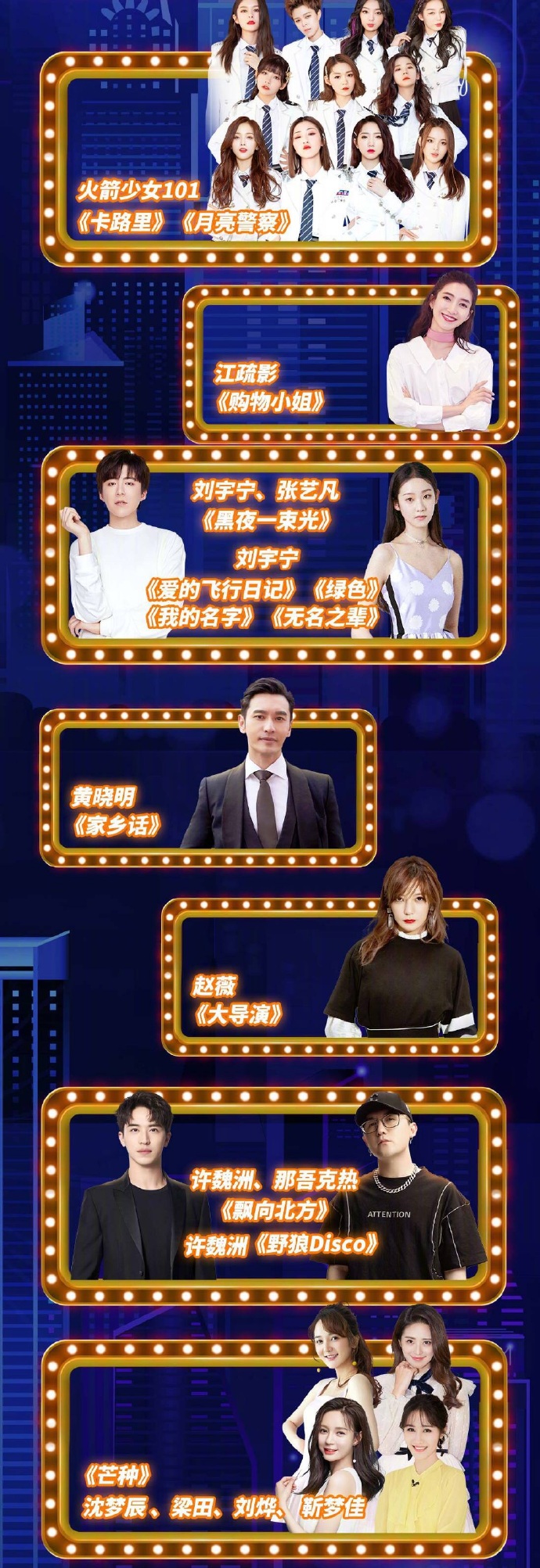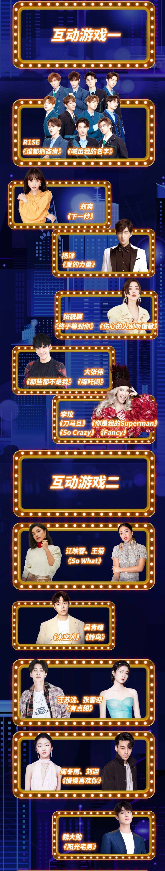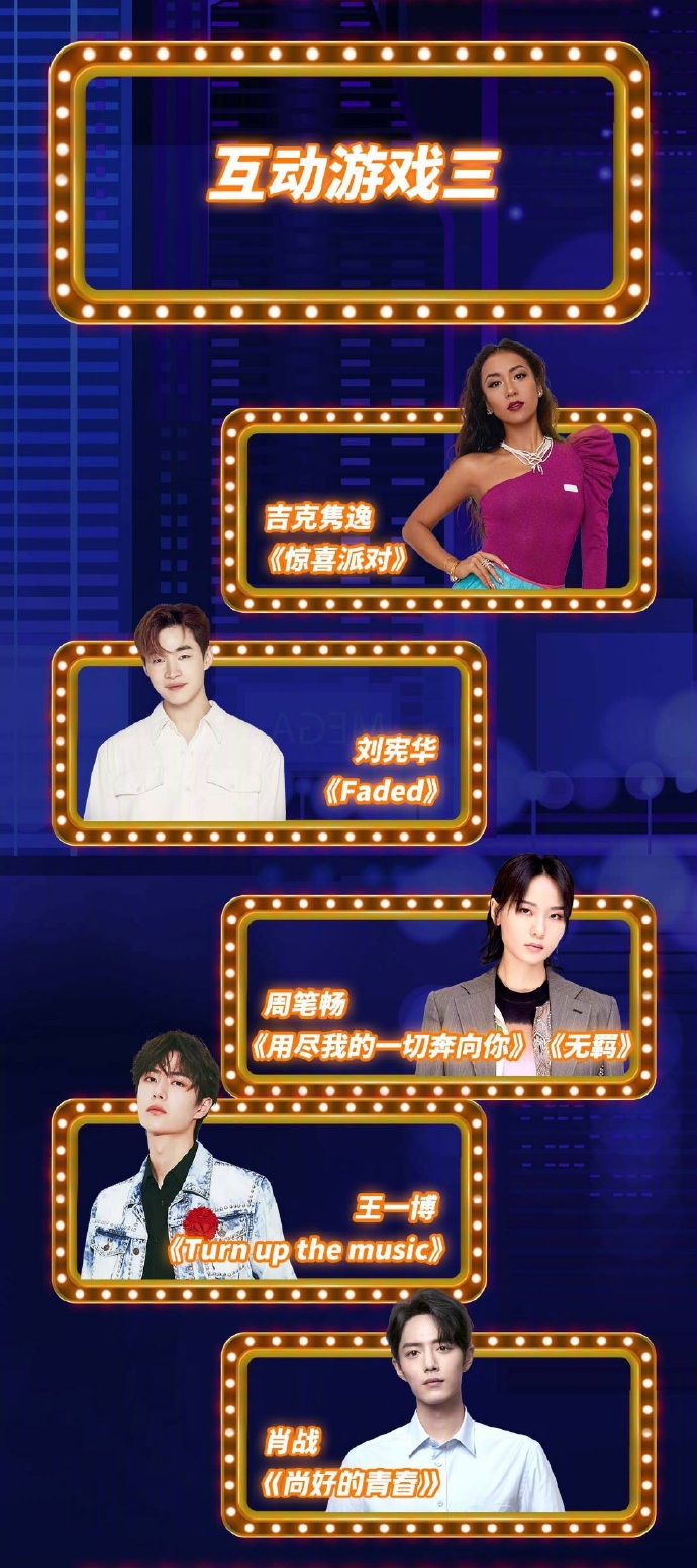 Vào tối ngày 19:30, sự kiện Đêm High bùng nổ 11.11 Suning 2019 sẽ chính thức được phát sóng trực tiếp trên đài Hồ Nam với sự góp mặt của nhiều nghệ sĩ trẻ nổi tiếng. Trong đó có sự tham gia của Vương Nhất Bác, Tiêu Chiến, Dương Dương, Uông Tô Lang, Trịnh Sảng, Hứa Ngụy Châu, Ngô Diệc Phàm, Huỳnh Hiểu Minh, Triệu Vy, Giang Sơ Ảnh, Rocket Girls 101, R1SE, Thẩm Mộng Thần, Trương Lượng Dĩnh, Ngô Thành Phong, Châu Đông Vũ, Henry Lau, Thái Y Lâm,…