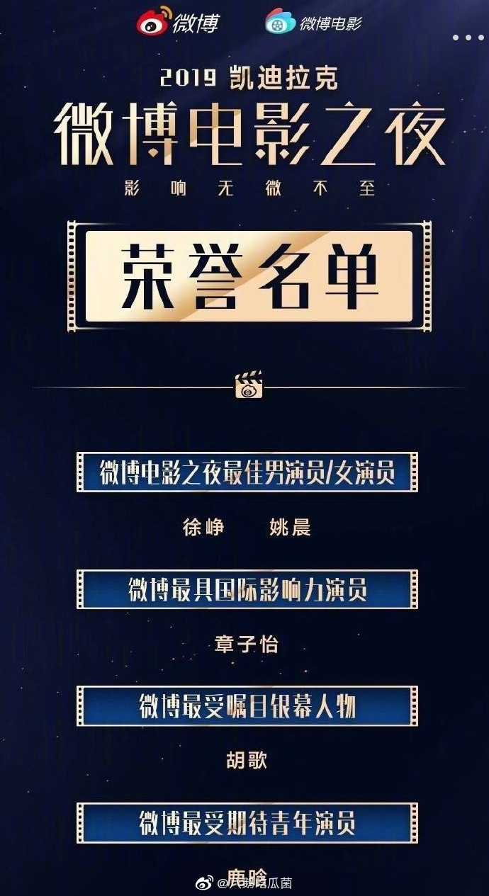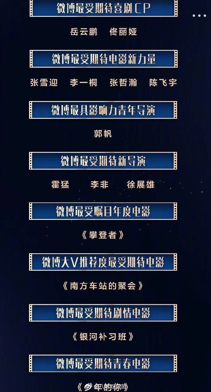 - Hoắc Mãnh, Lý Phi, Từ Triển Hùng đạt giải Đạo diễn mới được mong đợi nhất