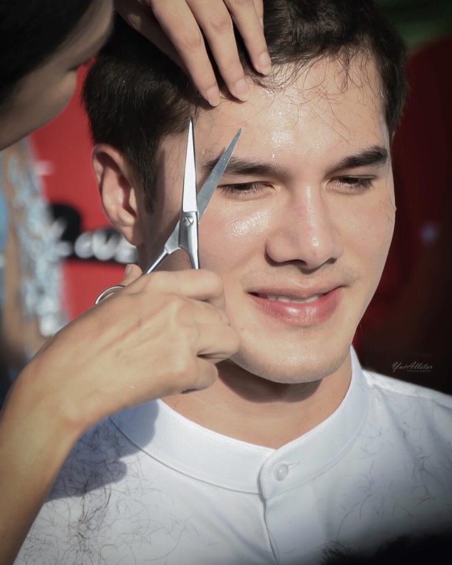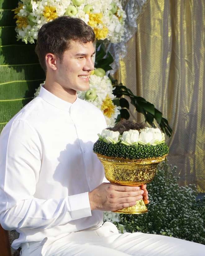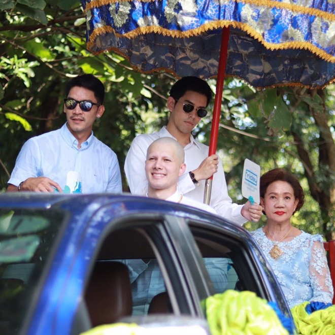 Nghi lễ xuống tóc được thực hiện dưới sự chứng kiến của người thân, bạn bè, quản lý cùng fanclub Mik Thongpraya.