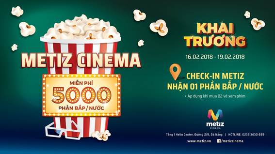 Metiz Cinema dự kiến khai trương ngày 16.01.2018 (nhằm Mùng 1 Tết Âm lịch) với chương trình khuyến mãi tặng 5000 phần bắp/nước miễn phí khi khách đến trải nghiệm rạp phim.