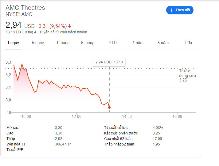 Cổ phiếu của AMC đang ở mức rất đáng báo động
