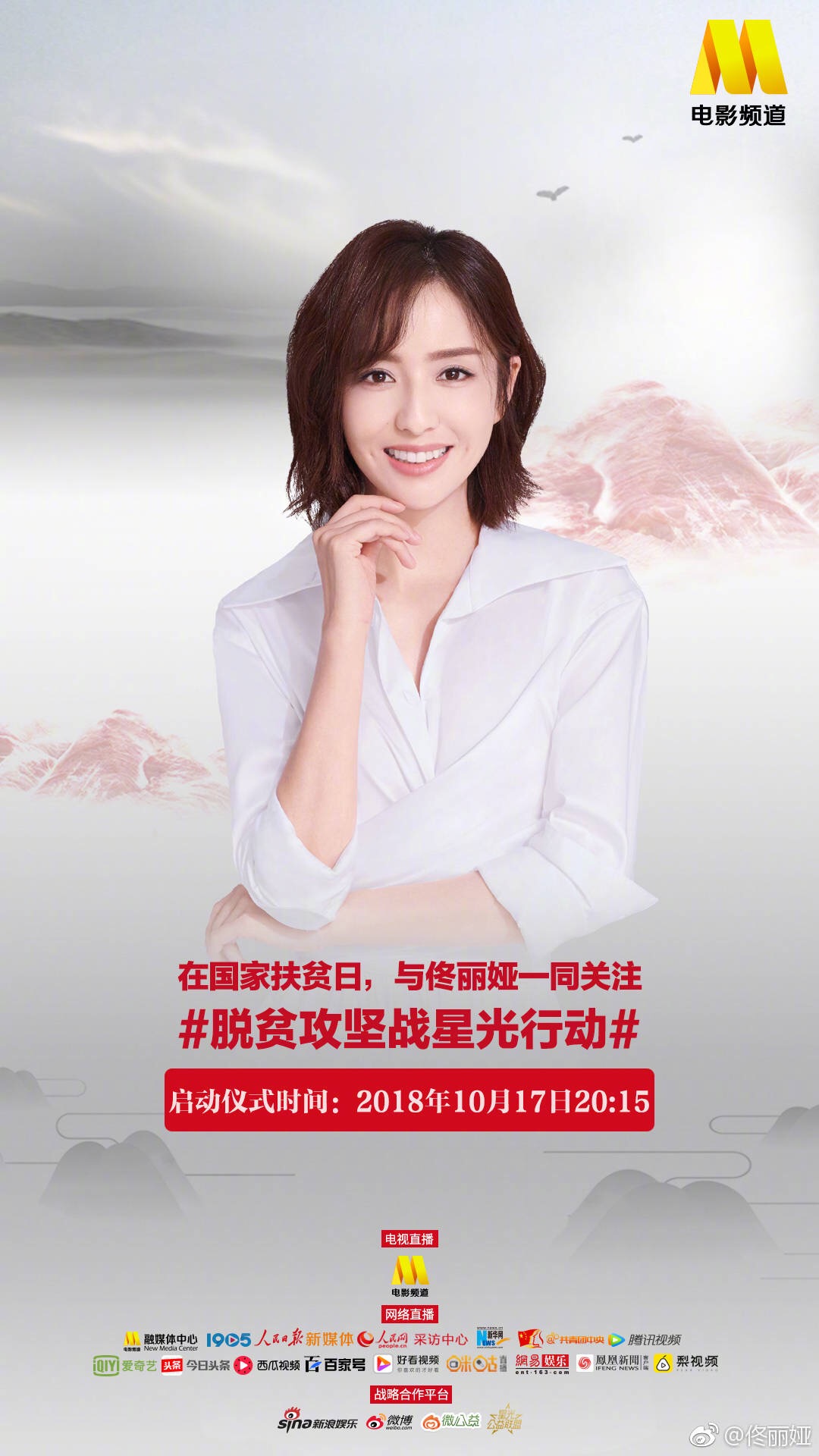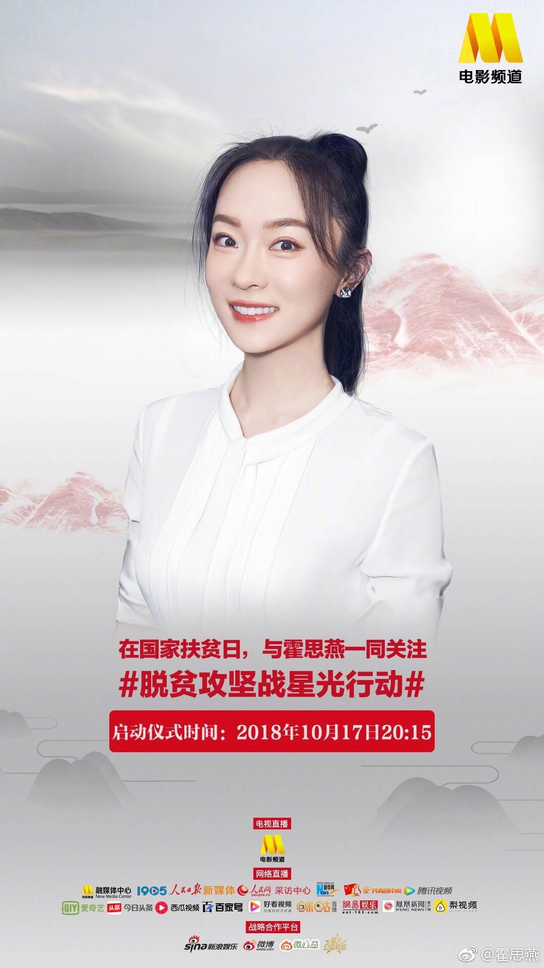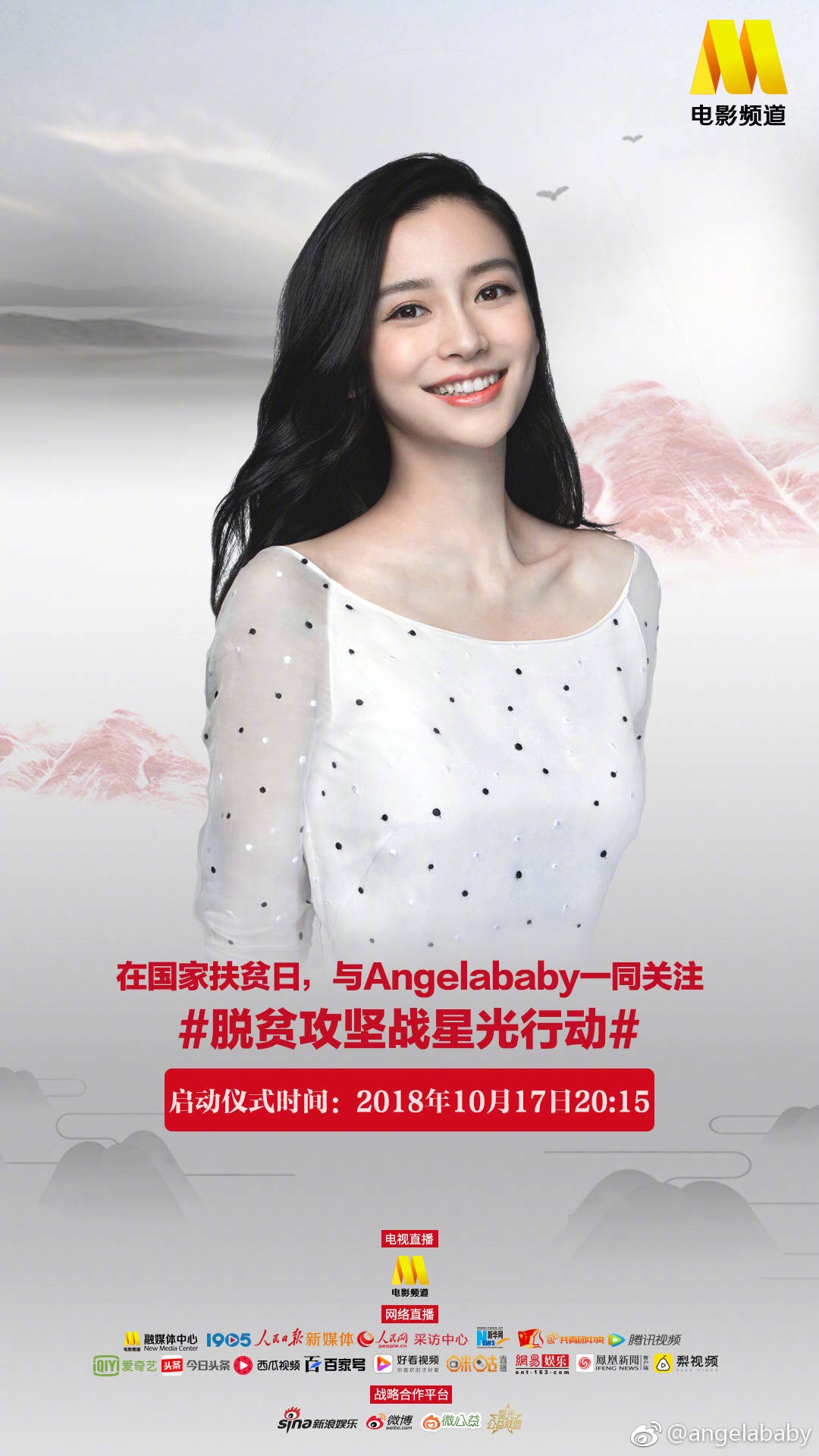 Vừa qua, sau khi công bố danh sách đầu những ngôi sao nổi tiếng trong làng giải trí Hoa ngữ như Huỳnh Hiểu Minh, Lý Băng Băng, Lâm Tâm Như, Dương Mịch,.. sẽ cùng nhau tham dự sự kiện National Poverty Alleviation Day (Ngày quốc gia xóa đói giảm nghèo) diễn ra vào 17/10 sắp tới. Bên cạnh đó, họ cũng đã công bố những nghệ sĩ còn lại gồm Angela Baby, Địch Lệ Nhiệt Ba, Dương Tử, Mã Tư Thuần….Theo dự kiến, chương trình phát sóng trên kênh CCTV6 và livestream trực tiếp lúc 20h15 (theo giờ địa phương). Những diễn viên cũng đã lên tiếng quảng bá và hi vọng nhiều nhà hảo tâm có thể góp sức trong chiến dịch ý nghĩa vì cộng đồng.