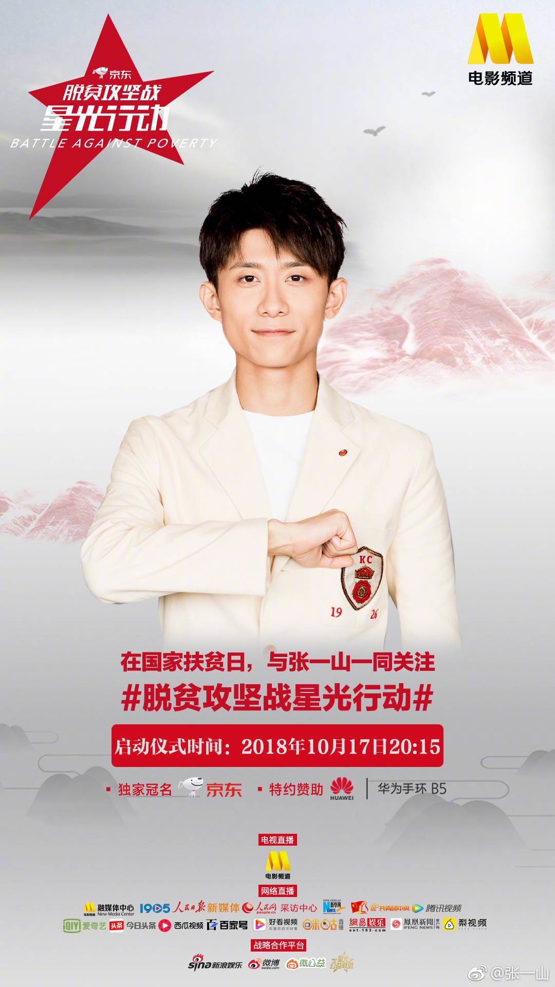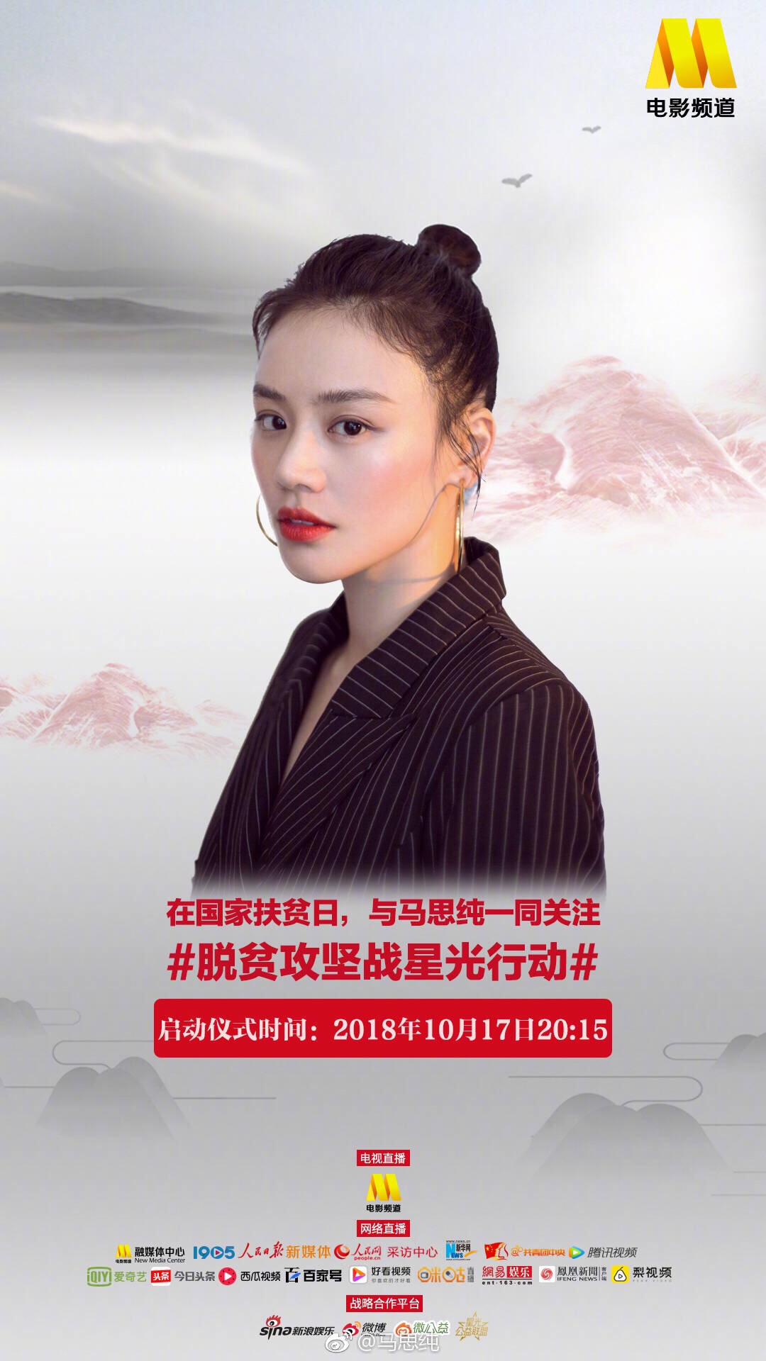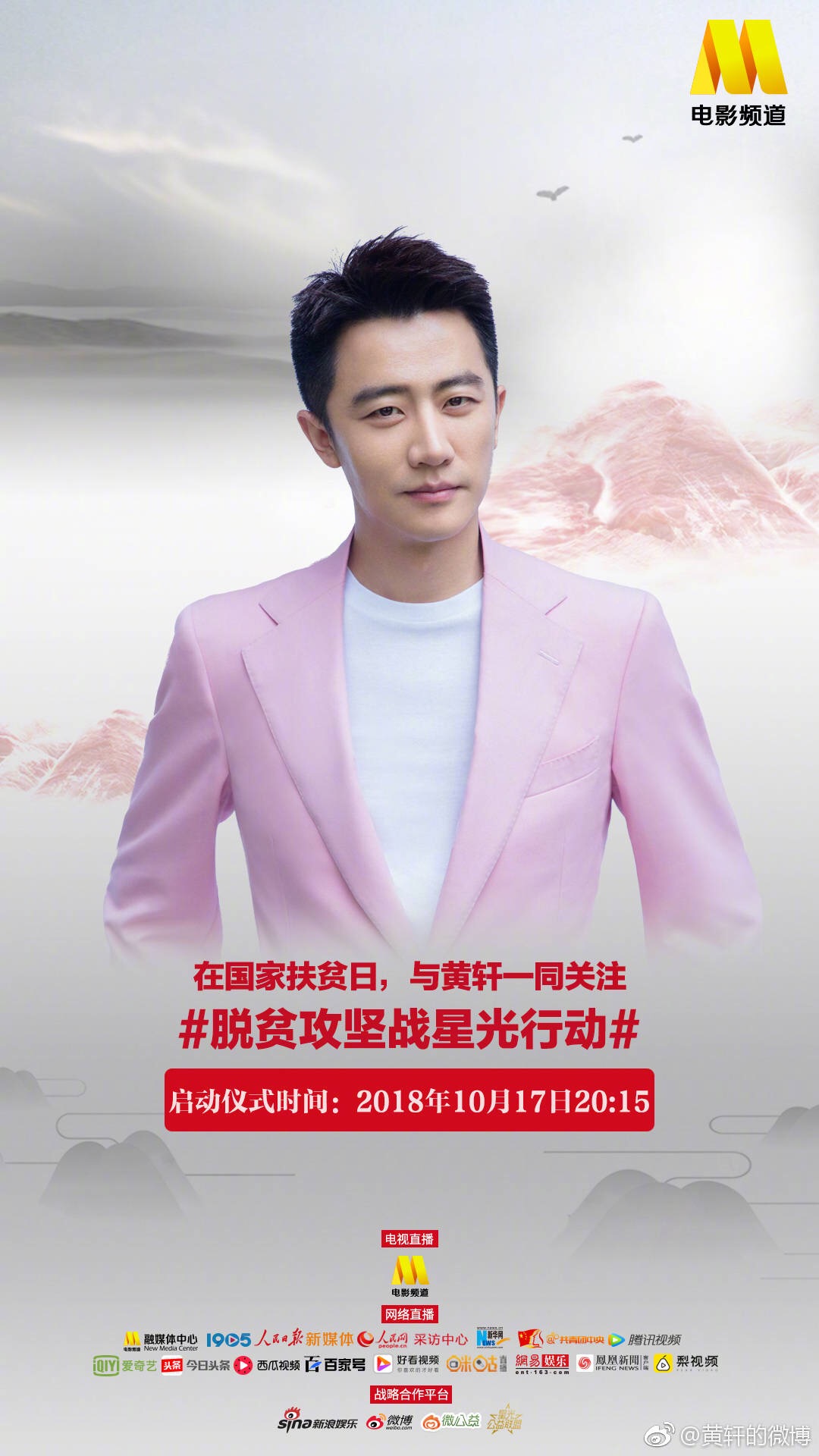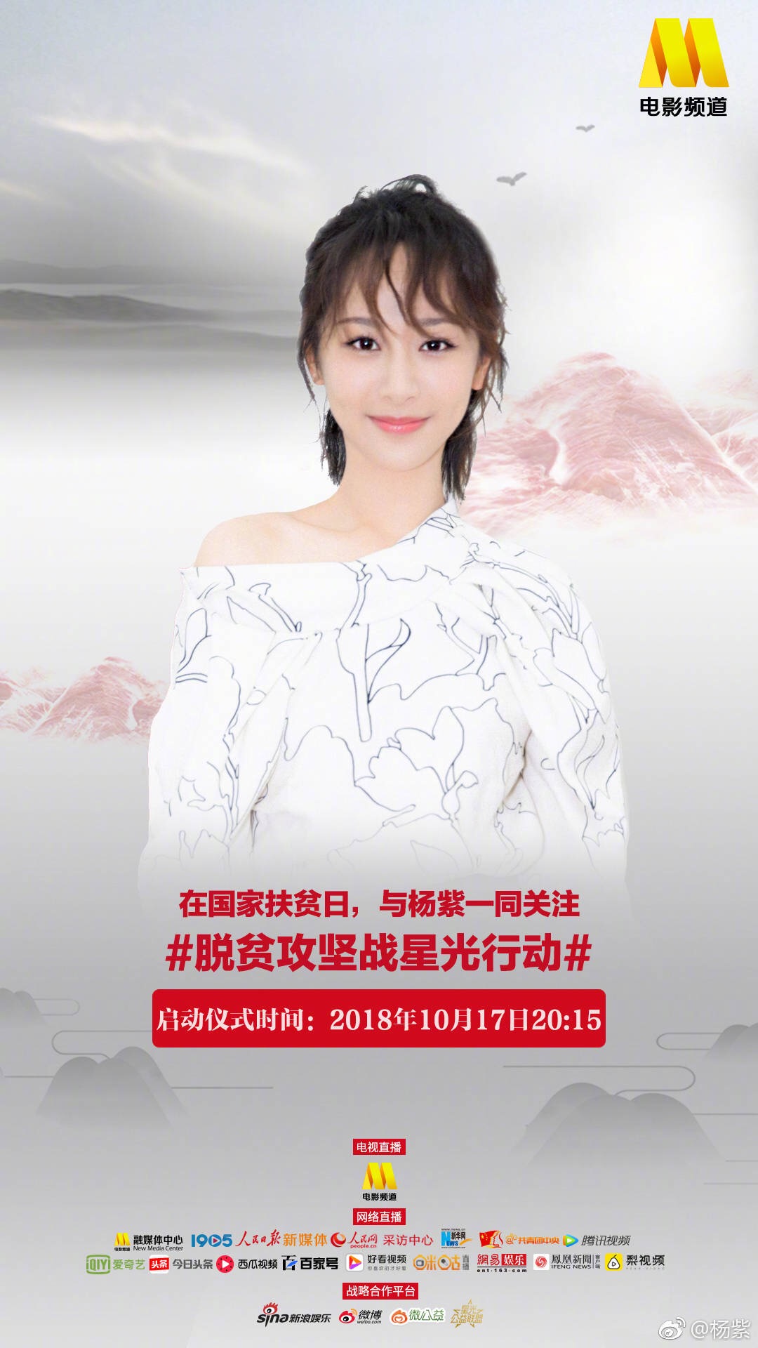 Vừa qua, sau khi công bố danh sách đầu những ngôi sao nổi tiếng trong làng giải trí Hoa ngữ như Huỳnh Hiểu Minh, Lý Băng Băng, Lâm Tâm Như, Dương Mịch,.. sẽ cùng nhau tham dự sự kiện National Poverty Alleviation Day (Ngày quốc gia xóa đói giảm nghèo) diễn ra vào 17/10 sắp tới. Bên cạnh đó, họ cũng đã công bố những nghệ sĩ còn lại gồm Angela Baby, Địch Lệ Nhiệt Ba, Dương Tử, Mã Tư Thuần….Theo dự kiến, chương trình phát sóng trên kênh CCTV6 và livestream trực tiếp lúc 20h15 (theo giờ địa phương). Những diễn viên cũng đã lên tiếng quảng bá và hi vọng nhiều nhà hảo tâm có thể góp sức trong chiến dịch ý nghĩa vì cộng đồng.